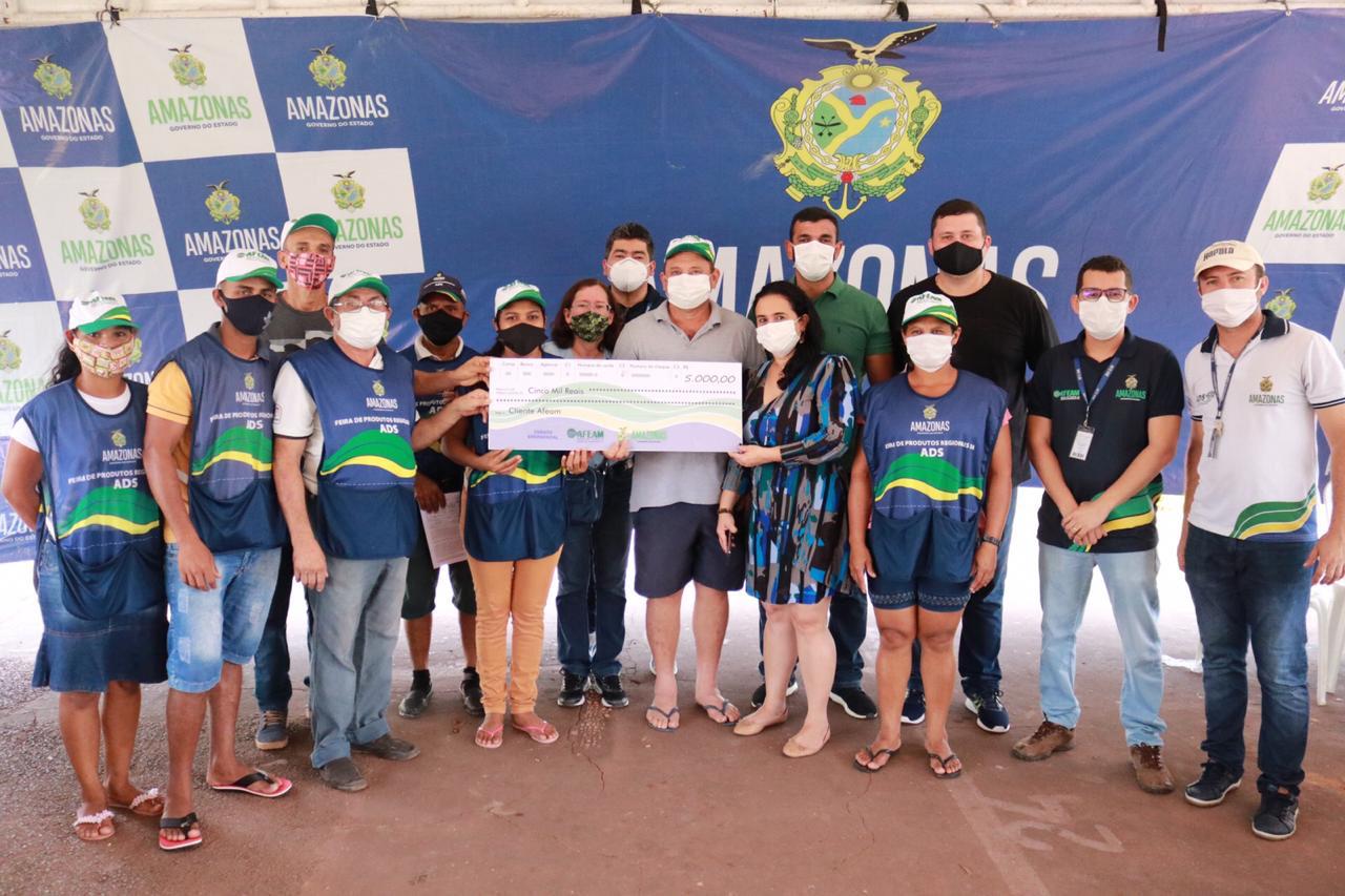 Os produtores rurais participantes das Feiras de Produtos Regionais da Agência de Desenvolvimento Sustentável (ADS), no município de Presidente Figueiredo (a 127 quilômetros de Manaus), receberam, neste sábado (07/10), o aporte financeiro de R$ 110 mil em crédito emergencial oferecido em parceria com a Agência de Fomento do Estado do Amazonas (Afeam). O valor foi contratado por 19 produtores que, a partir de agora, terão a oportunidade de até triplicar a produtividade do cultivo de hortifrutis e pescados.