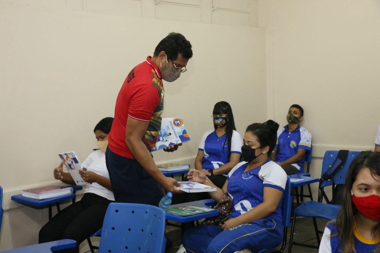 Preocupada em alcançar os estudantes que não dispuseram de recursos tecnológicos para acessar os conteúdos do “Aula em Casa”, a Secretaria de Estado de Educação e Desporto disponibilizou, a todos os alunos do Ensino Médio, o Guia do Estudante, que é um apostila impressa com os conteúdos que foram transmitidos. Os aluno da Escola Estadual (EE) Dr. José Milton Bandeira, na zona norte de Manaus, foram os primeiros a receber o material, nesta terça-feira (1º/09).