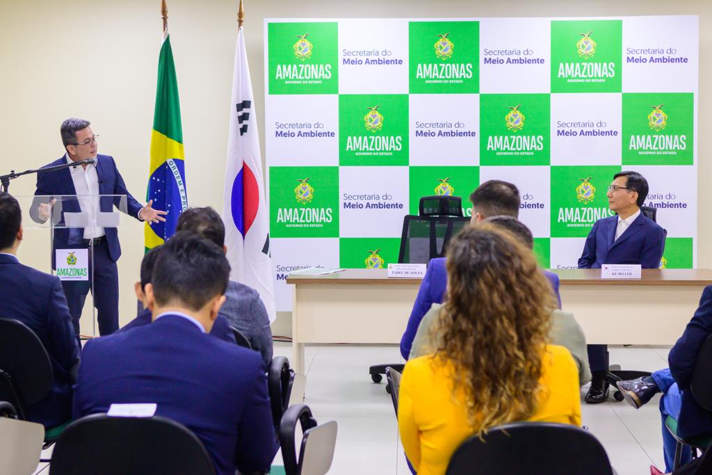 "Sabemos que esse processo de extremos climáticos vai se intensificar e essa iniciativa do Estado do Amazonas com a Embaixada da Coreia é importante para que a gente se prepare para essa janela de imprevisibilidade que está vindo por aí", afirmou o vice-governador, ao lado dos titulares da Sema, Eduardo Taveira, e do Instituto de Proteção Ambiental do Amazonas (Ipaam), Juliano Valente.