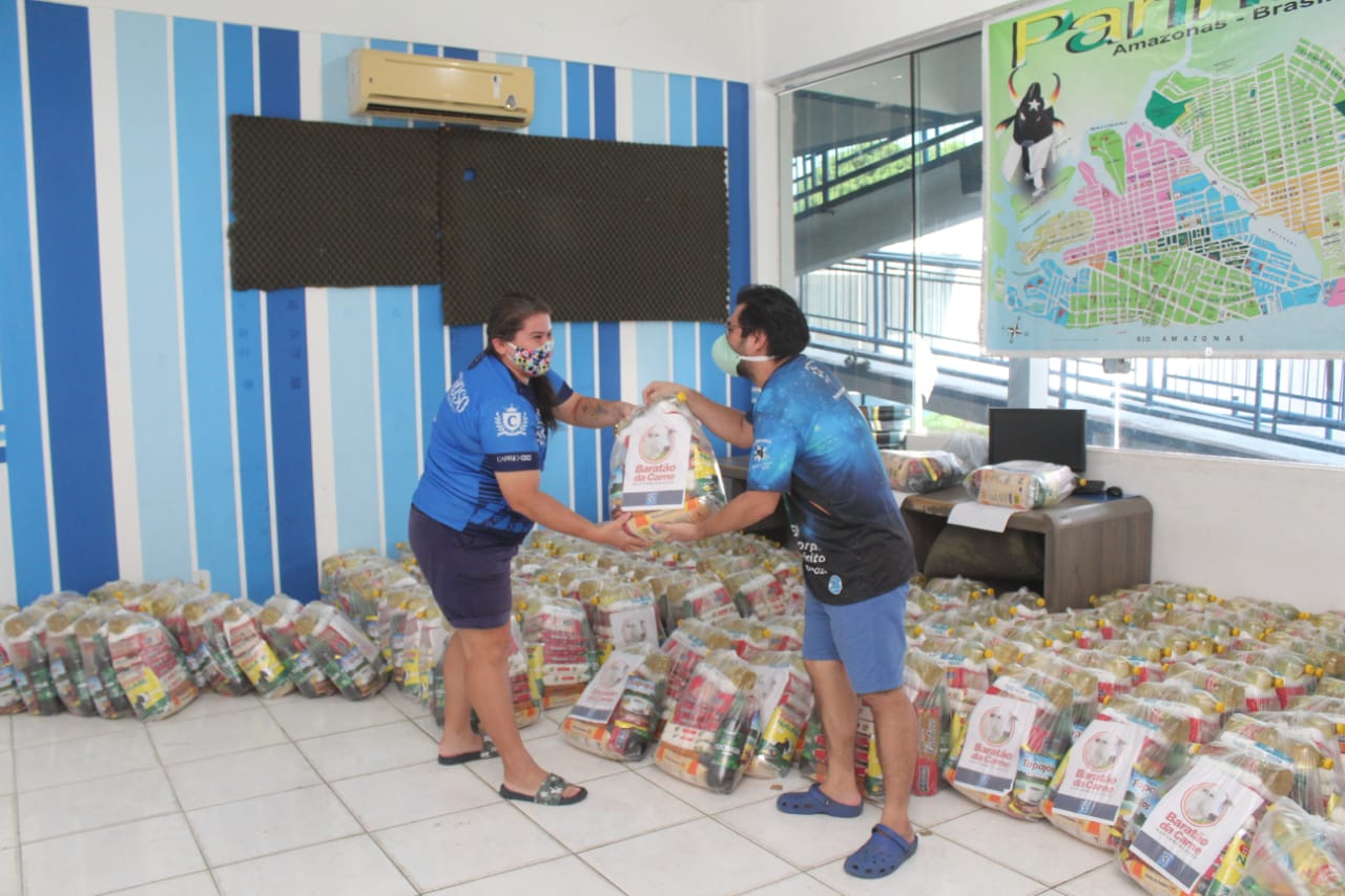 A Diretoria do Caprichoso elaborou um cronograma de entrega para evitar aglomerações e seguir todos os protocolos recomendados pelas autoridades de saúde em prevenção ao novo coronavírus. Os alimentos também chegaram às mãos de desenhistas, equipe técnica do Conselho de Arte, trabalhadores do ateliê (galpãozinho), costureiras, cênica, paikicés (empurradores de alegorias), coordenadores do tribal, cantores de curral, escritório administrativo, comunicação, vigias, banda musical, eventos, Raça Azul e vaqueirada.