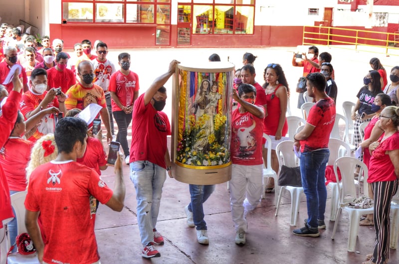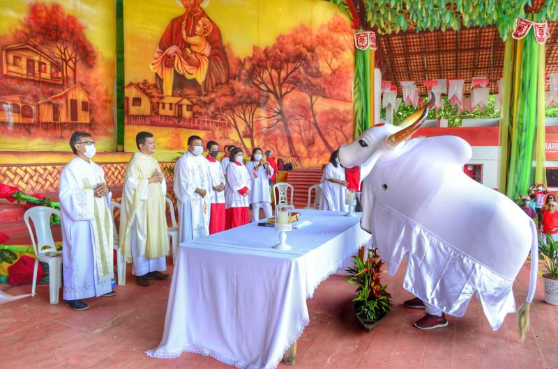 O Boi Bumbá Garantido celebrou o retorno das atividades dos artistas com a tradicional missa, que aconteceu, neste sábado (2), no Curral Lindolfo Monteverde, em Parintins, com a presença de torcedores, artistas e diretoria da Associação Folclórica.