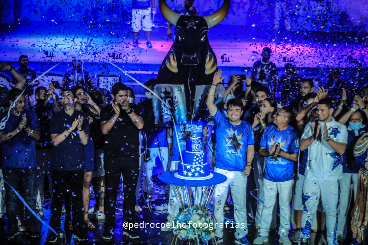 O apresentador Edmundo Oran, o levantador de toadas Patrick Araújo e o amo Prince do Boi comandaram os parabéns com um coral de mais de 5 mil vozes que celebrou a história do boi negro de Parintins. O presidente Jender Lobato anunciou seu time de artistas e a integração ao quadro azulado dos consagrados Marialvo Brandão e Roberto Reis, que foram aplaudidos pela nação azul e branca. “Temos o melhor quadro de artistas do festival e ainda vem somar Marialvo Brandão e Roberto Reis. Imaginem a força do Caprichoso para o festival 2022. Aguardem um boi-bumbá Caprichoso dentro do padrão que o torcedor já conhece”, anunciou o presidente Jender Lobato.