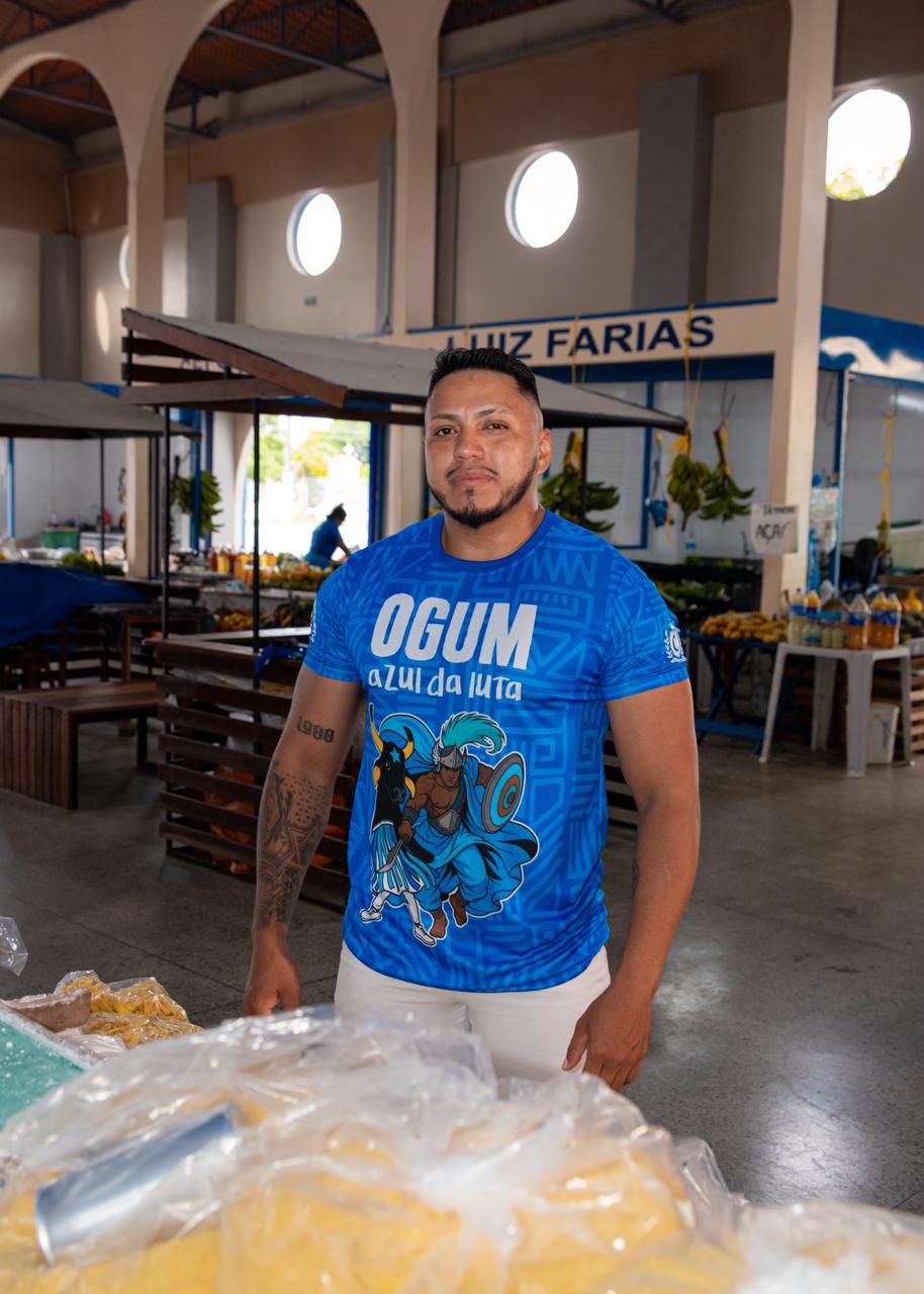 A força de Ogum, o guerreiro que abre estradas e corta obstáculos, aparece no Mercado Municipal Luiz Gonzaga, espaço de aquecimento da economia popular, onde o trabalho e a luta diária traduzem a energia do orixá do ferro e da coragem.