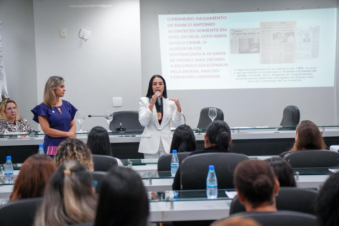 Durante a programação, foram abordados aspectos legais, atendimento às vítimas e a importância da atuação integrada das instituições no enfrentamento à violência.