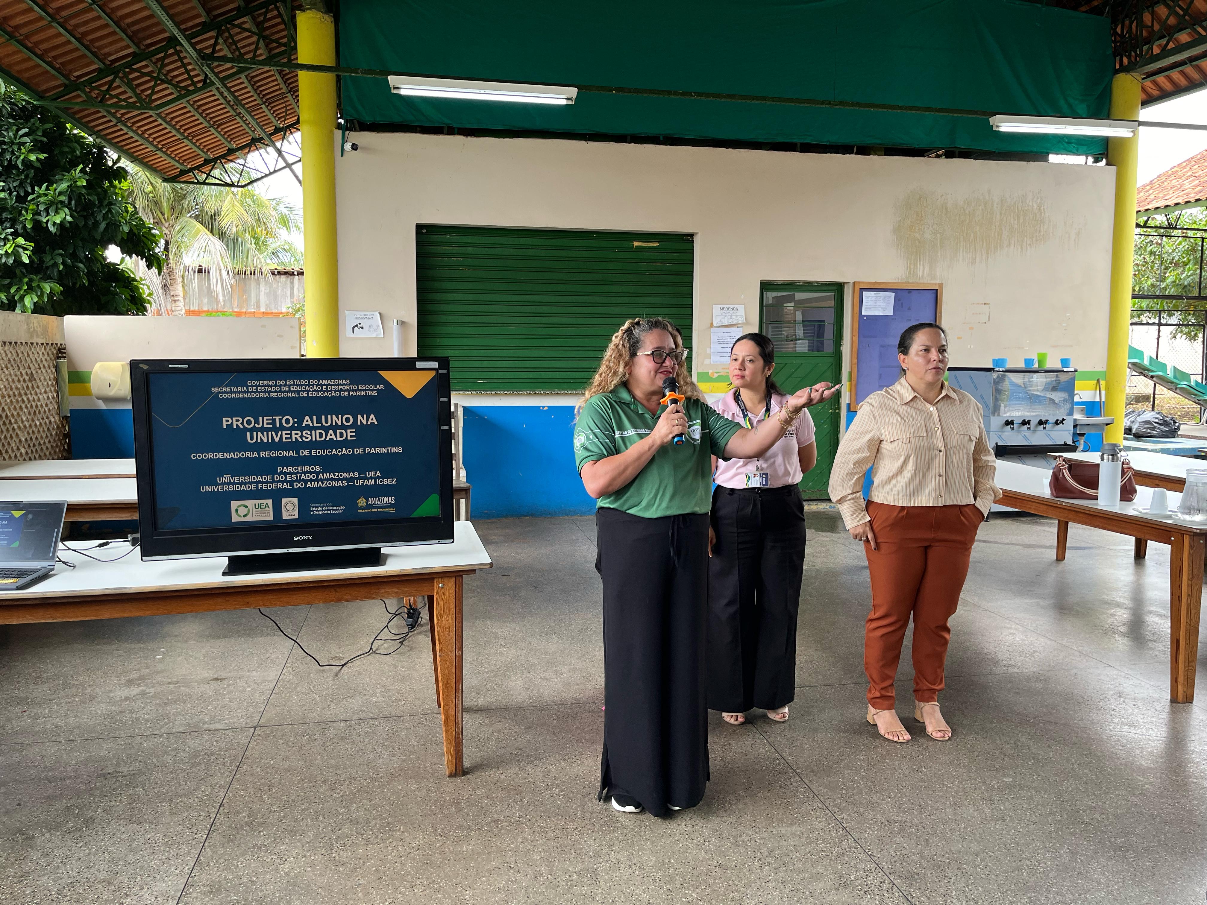 Em parceria com a Universidade Federal do Amazonas (Ufam) e Universidade do Estado do Amazonas (UEA), a Coordenadoria Regional de Parintins deu início nesta segunda-feira, 14, ao projeto “Aluno na Universidade”. A primeira ação aconteceu com alunos do primeiro ano do ensino médio da Escola Estadual Dom Gino Malvestio, nos dois turnos.
