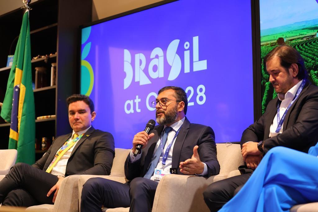 Em sua primeira agenda oficial na 28ª Conferência das Nações Unidas sobre Mudanças Climáticas, neste sábado (02/12), o governador Wilson Lima ressaltou o desafio do Brasil de transformar a comercialização de créditos de carbono em benefícios para a população. Durante painel que contou com a participação do ministro do Turismo, Celso Sabino, o governador apresentou iniciativas do Estado voltadas para a área ambiental, além do saneamento básico e acesso à água tratada.