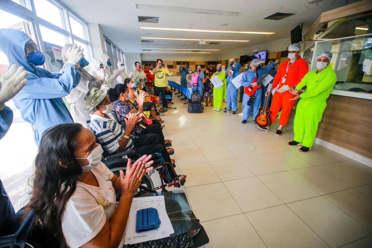 O Hospital e Pronto-Socorro (HPS) Delphina Aziz, unidade referência no Amazonas para tratamento do novo coronavírus, realizou nesta quinta-feira (09/07) um grande “Corredor da Vitória” para comemorar a milésima alta médica de paciente curado da doença. A unidade, localizada na zona norte da capital, teve a primeira alta registrada no dia 27 de março e chegou a ter 100% de ocupação dos leitos de enfermaria e UTI.