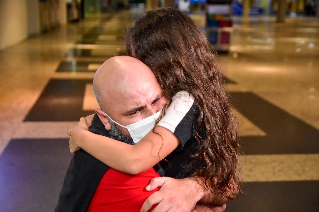 Uma das chegadas mais emocionantes foi a de Luciano Nazareth, 35, que foi recebido pelo abraço das filhas e da irmã. Ele estava internado no hospital Platão Araújo e foi transferido para o Estado do Maranhão. Ele contou que teve 90% do pulmão comprometido e que sua cura foi um milagre.