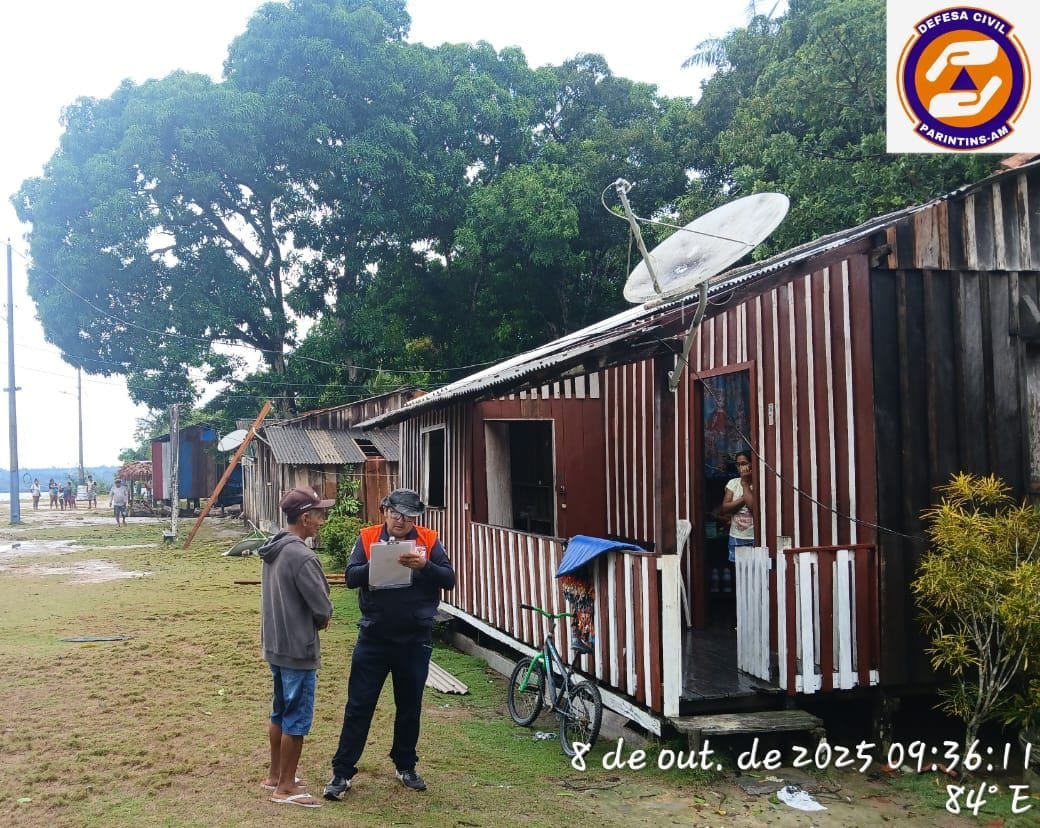Durante a visita, a equipe da Defesa Civil, acompanhada pelo presidente da comunidade, realizou um levantamento detalhado das situações de risco e das famílias afetadas, a fim de adotar medidas emergenciais e encaminhar os devidos relatórios para a Prefeitura de Parintins.