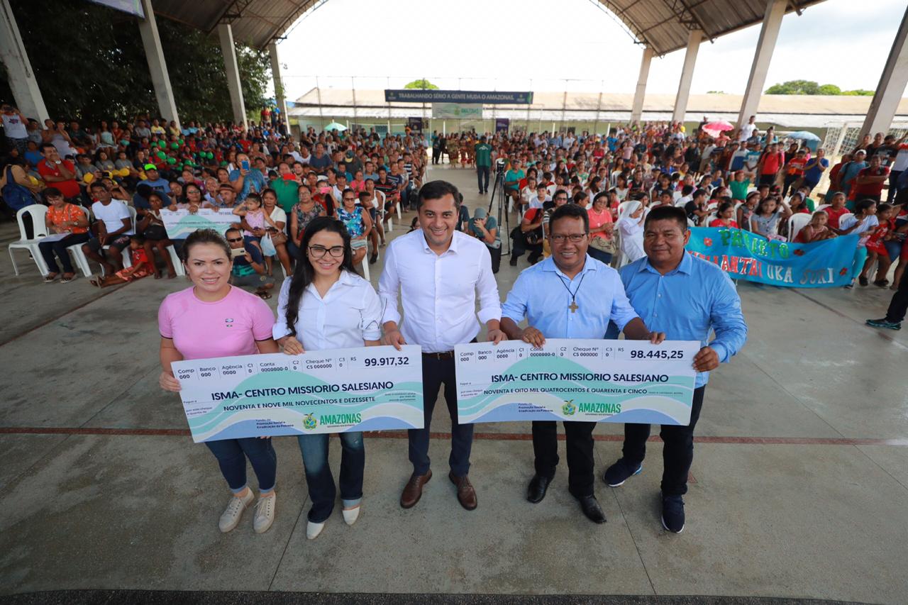 O governador do Amazonas, Wilson Lima, entregou na terça-feira (18/02), cheques simbólicos no valor total de R$ 395.362,57 a duas associações de São Gabriel da Cachoeira (distante 852 quilômetros da capital). A entrega foi realizada por meio do Fundo de Promoção Social e Erradicação da Pobreza (FPS) e beneficiará cerca de 1.800 pessoas.