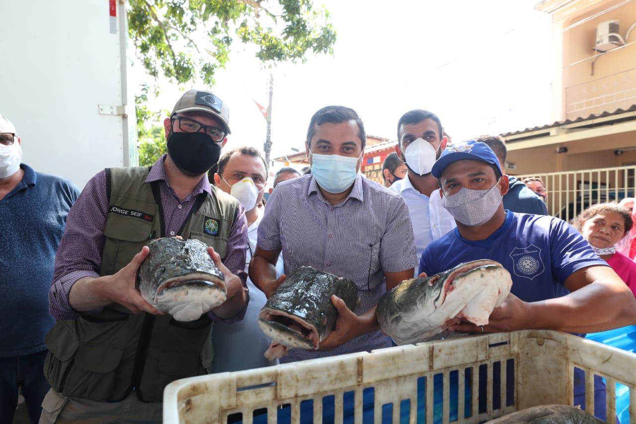 O governador do Amazonas, Wilson Lima, e o secretário nacional de Aquicultura e Pesca, Jorge Seif Júnior, visitaram, neste sábado (17/10), a Feira do Pirarucu de Manejo de Tefé. Realizada no Mirante das Mangueiras, área central do município, a feira também conta com produtos da agricultura familiar e envolve pescadores das colônias Z-4, de Tefé; e Z-23, de Alvarães, beneficiando diretamente cerca de 120 famílias que vivem da pesca sustentável do pirarucu.