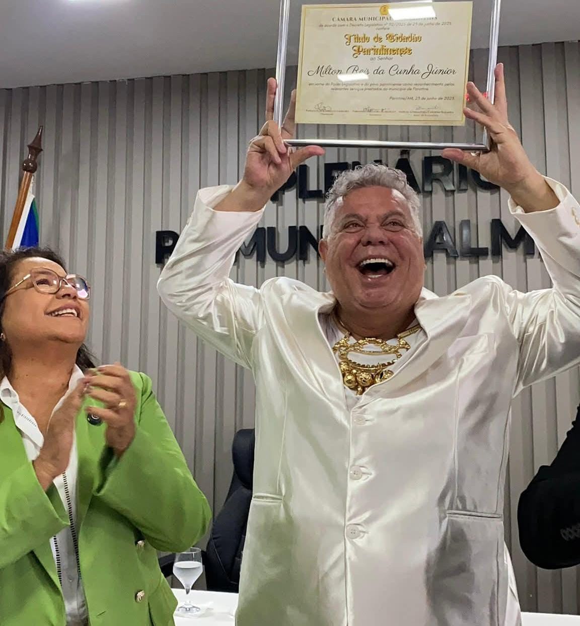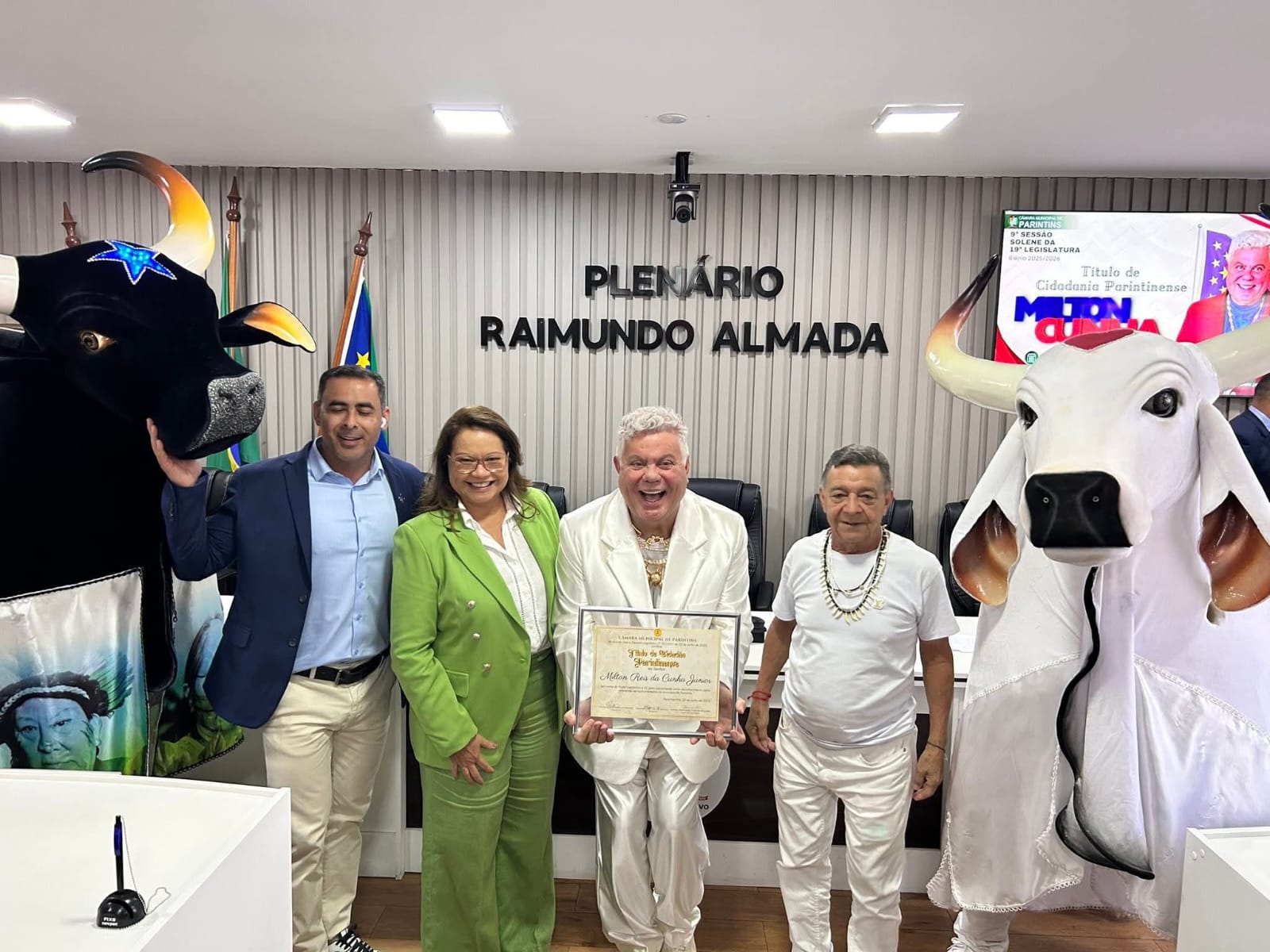 O carnavalesco e comentarista Milton Cunha agora é oficialmente cidadão parintinense. A homenagem foi proposta pela vereadora Márcia Baranda (União Brasil), que reconheceu o trabalho de Milton na valorização da cultura, dos artistas e do Festival Folclórico de Parintins em todo o Brasil.