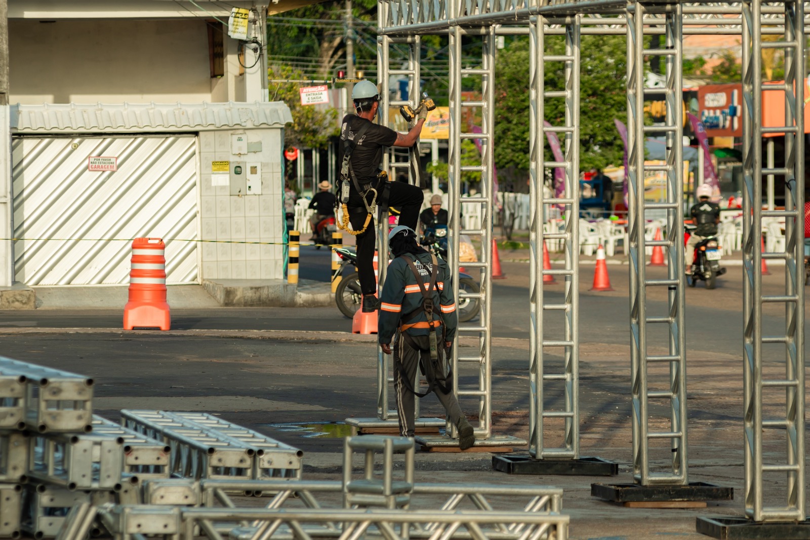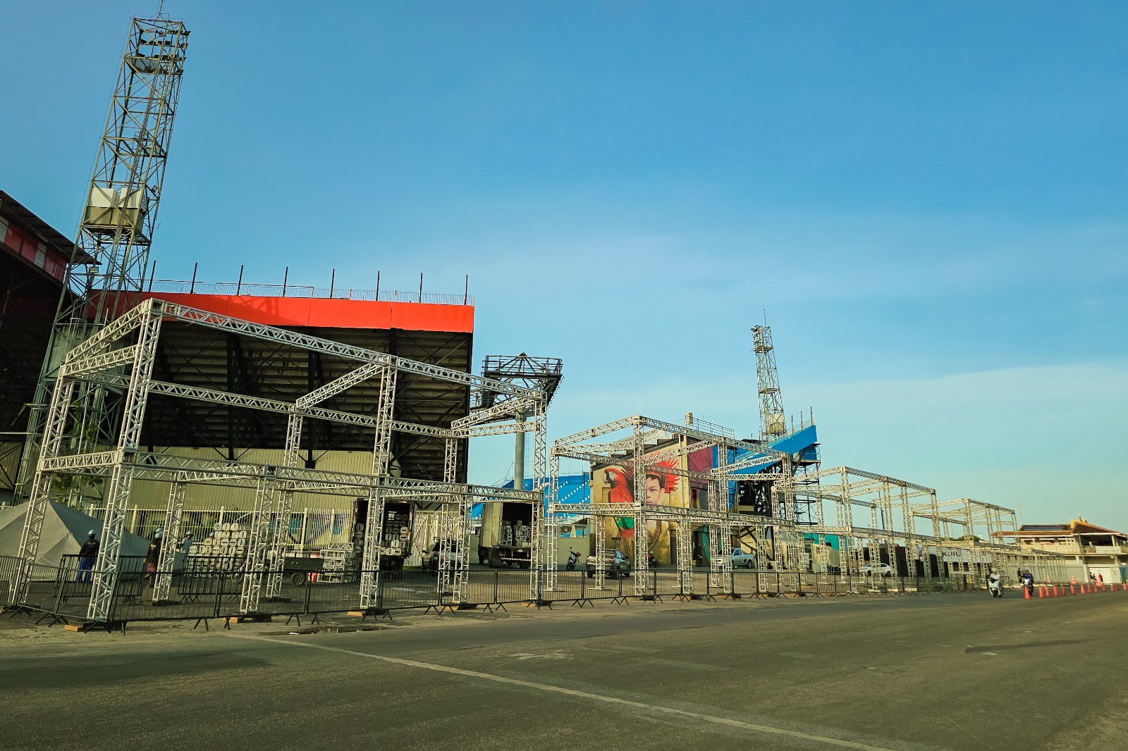 A previsão é que a empresa contratada finalize toda a montagem entre os dias 9 e 10 de fevereiro, período destinado à realização dos testes finais de som, iluminação e segurança, para que tudo esteja pronto para os três dias de festa.