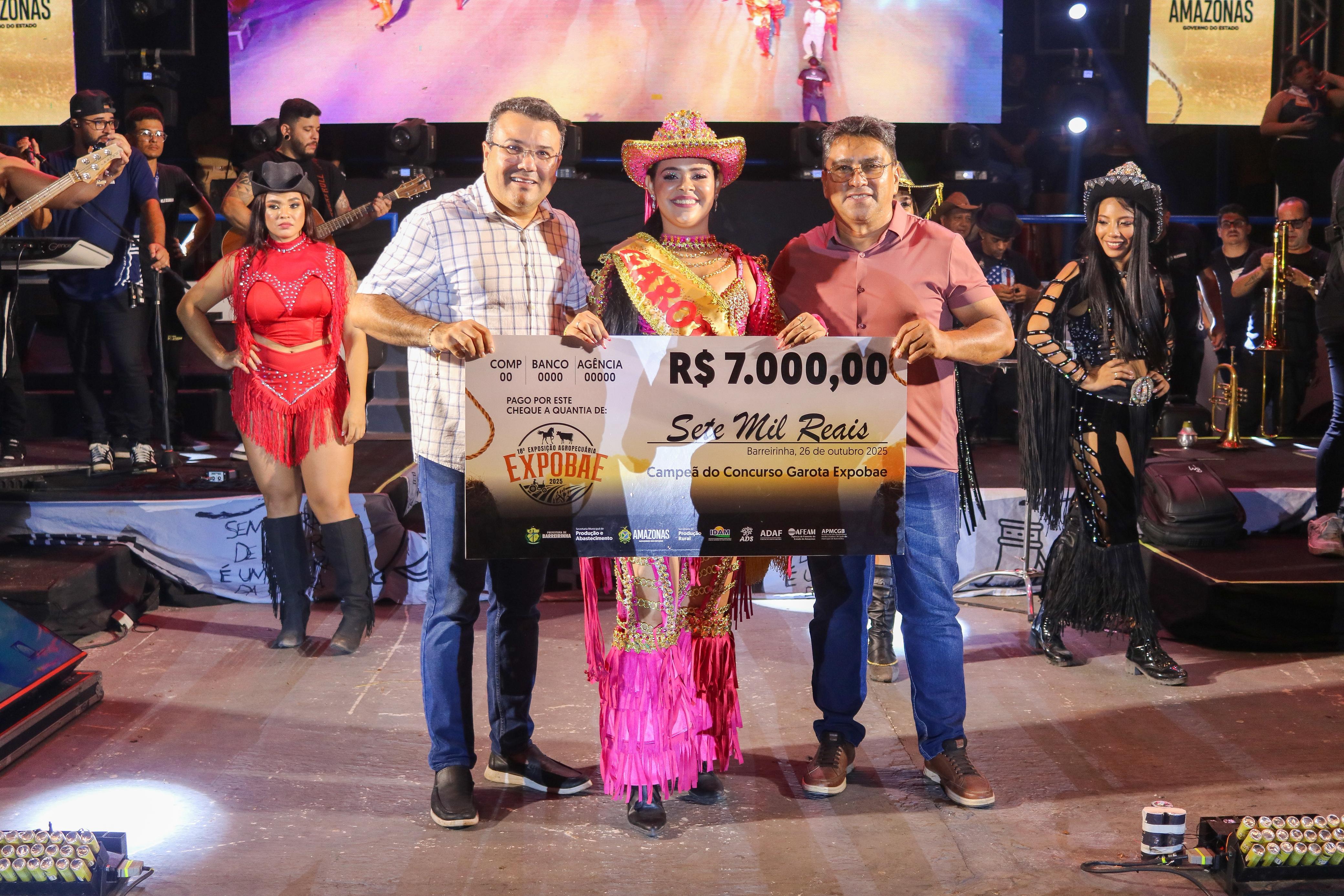 A programação noturna iniciou com as finais do rodeio e da prova de laço, que atraíram um expressivo público às arenas das competições. Em seguida, o público acompanhou as apresentações da Banda Swing com Pegada, o tradicional Concurso Garota Expobae 2025, que consagrou Ranna Tayane Dutra como vencedora, e o show de Amarildo do Sax, que encerrou o evento com muita animação e carisma.