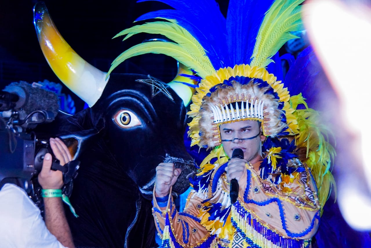 A dança dos tuxauas, as tribos indígenas e o pajé, Erick Beltrão, em um módulo alegórico, reverenciaram a luta do povo Yanomami contra as ameaças dos garimpos. Pela tela da TV Acrítica, emissora oficial do Festival Folclórico de Parintins, o torcedor azul e branco contemplou a Rainha do Folclore, Cleise Simas, conduzida por um Beija-Flor ao centro da arena para evolução perfeita com fantasia fantástica assinada pelo figurinista Fabson Rodrigues.