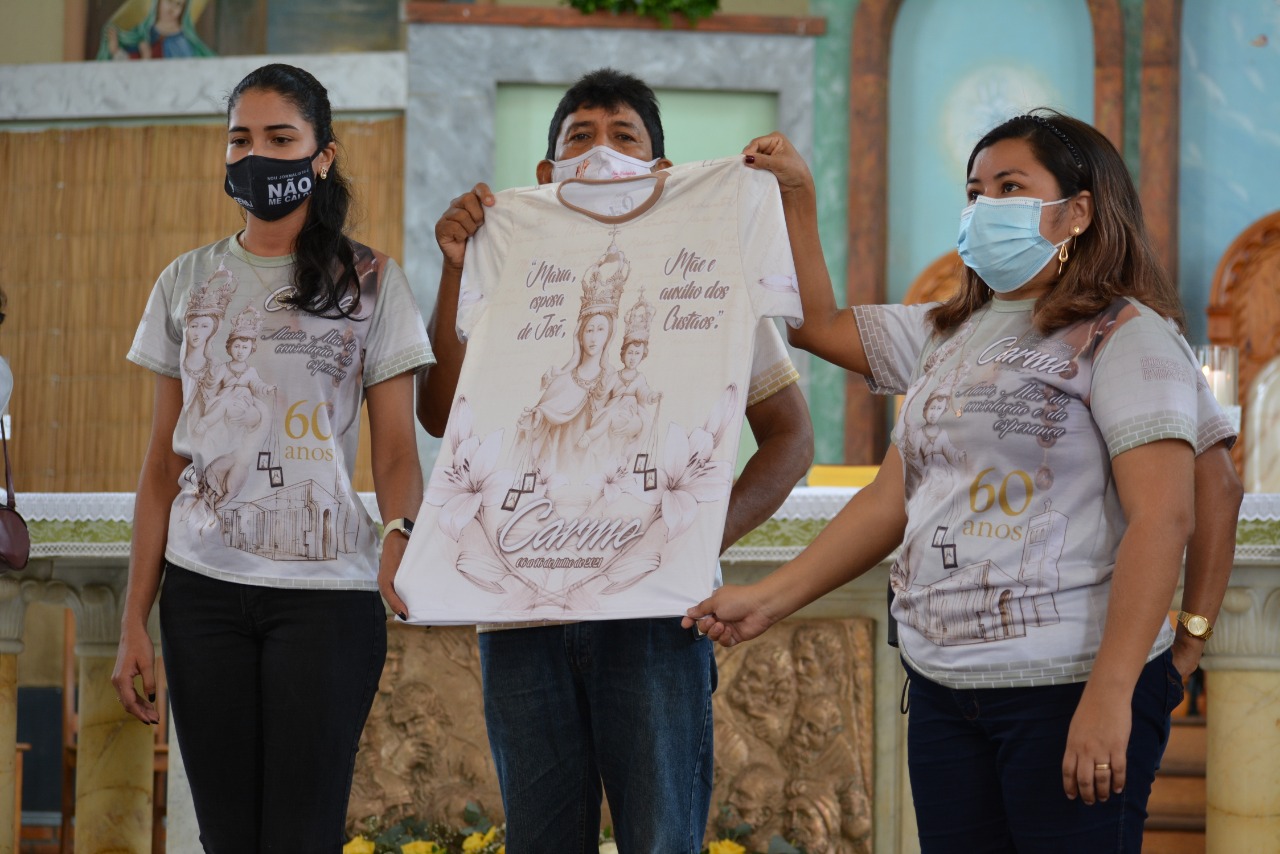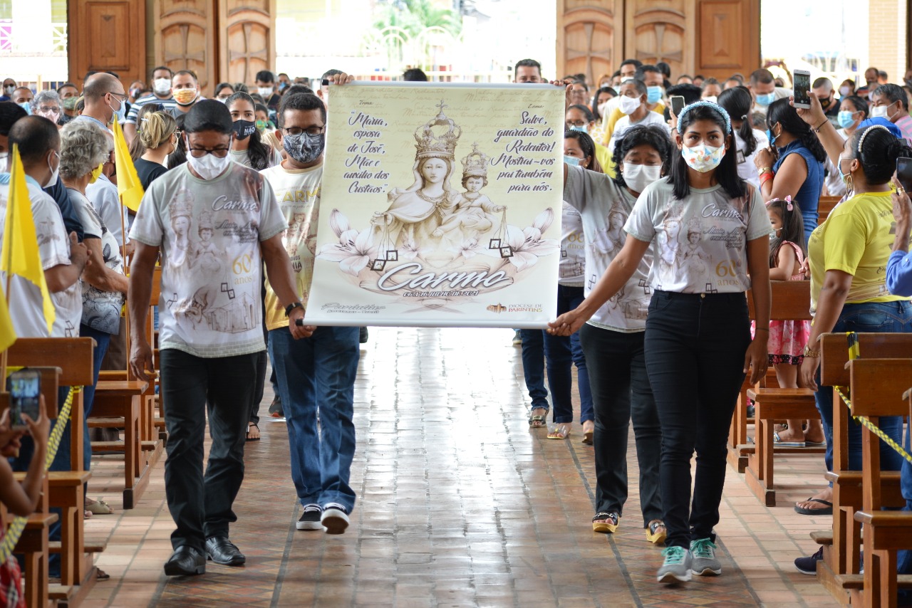 O Padre Dorival Nascimento, oficializou com leigos e leigas da Paróquia da Catedral, o cartaz, tema, lema e camisa da Festa de Nossa Senhora do Carmo 2021, durante celebração na Catedral de Parintins: "Maria, esposa de José, Mãe e auxílio dos Cristãos"é o tema e o lema será “Salve, guardião do redentor! Mostrai-vos pai também para nós”.