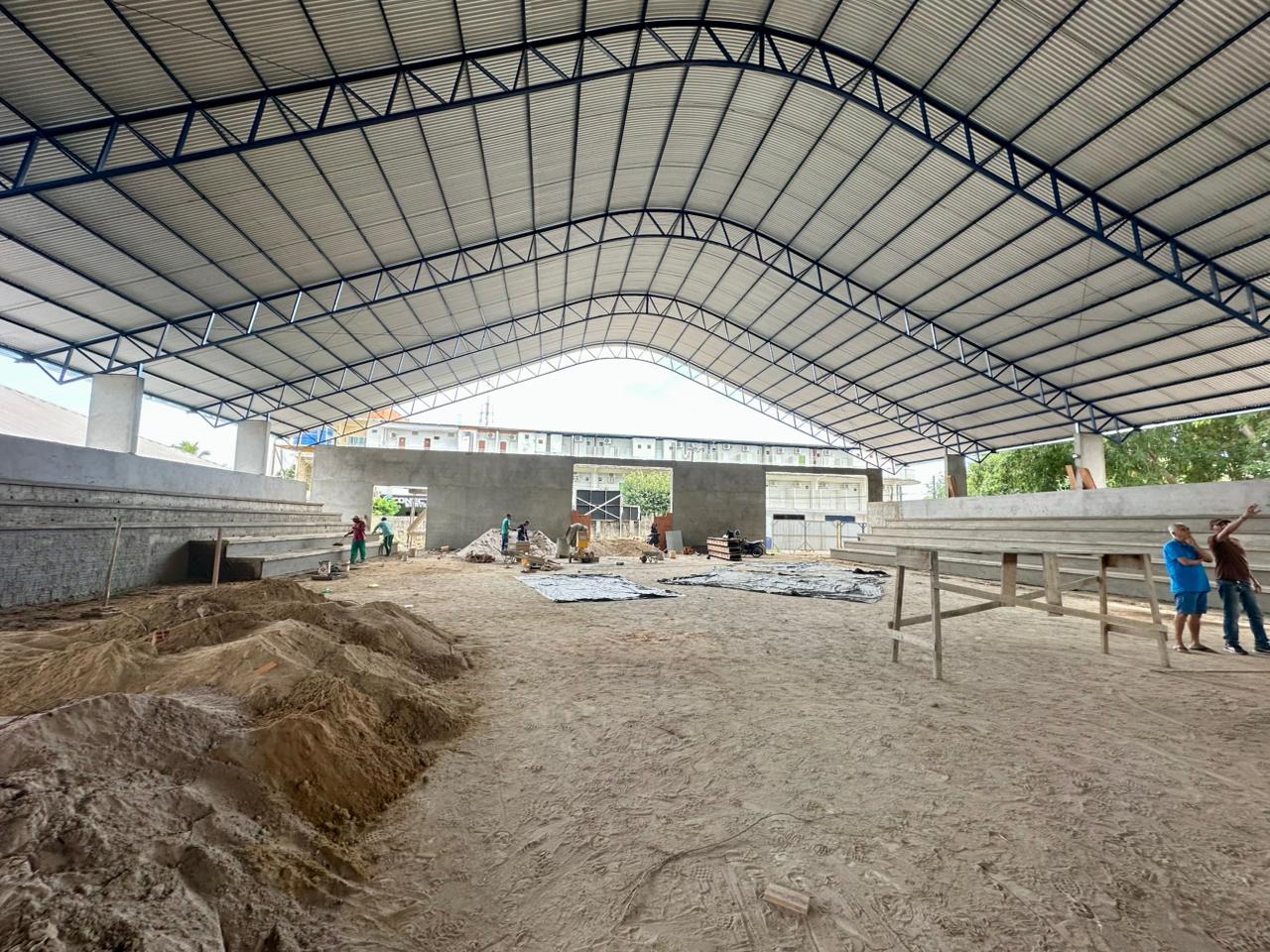 A obra de construção do ginásio poliesportivo da Escola Senador João Bosco integra as ações da gestão municipal, sob a liderança do prefeito Mateus Assayag e da vice-prefeita Vanessa Gonçalves.