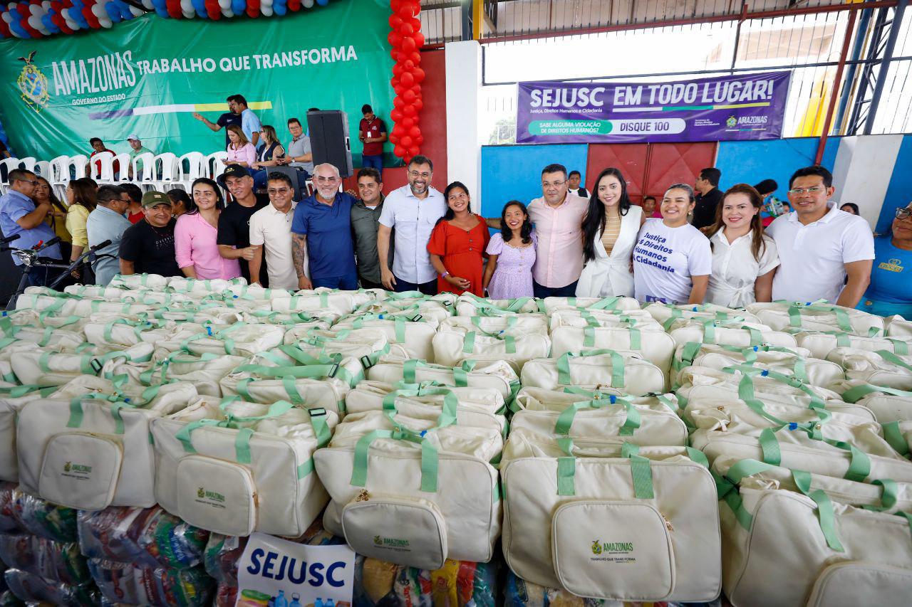 Por meio da Secretaria de Estado de Justiça, Direitos Humanos e Cidadania (Sejusc), o Governo do Amazonas deu início à entrega de 400 cestas de alimentos a famílias do município. Elas são destinadas às pessoas em situação de vulnerabilidade cadastradas, preliminarmente, pela secretaria. Ao todo, o Estado entregou 3,6 toneladas em alimentos.
