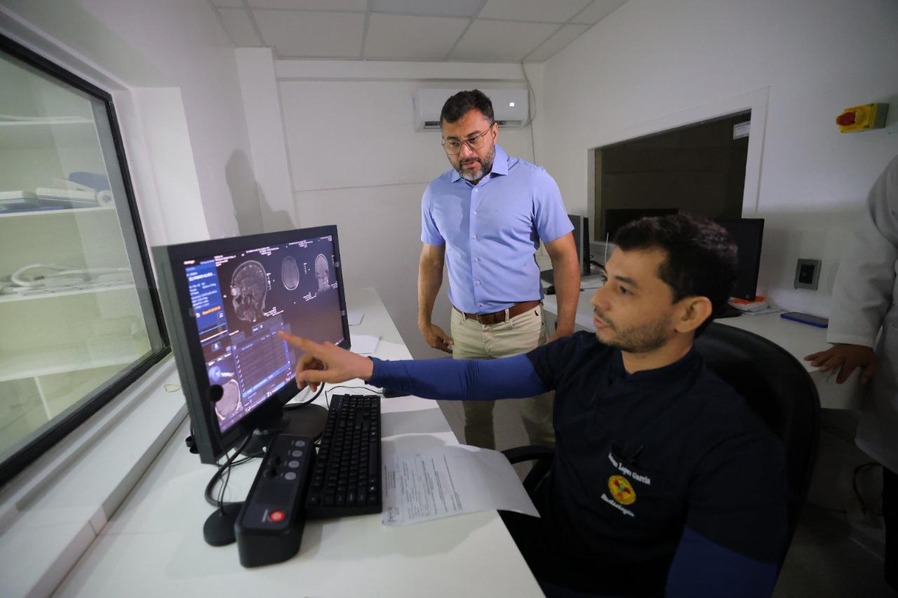 Na unidade de saúde, o governador Wilson Lima conversou com pacientes que passavam por atendimento no hospital. Ele também visitou as áreas onde são realizados procedimentos de ressonância magnética e hemodinâmica, que receberam novos equipamentos no mês de janeiro, a sala de Órteses, Próteses e Materiais Especiais (OPME), além das obras que estão em andamento no laboratório do Hospital Francisca Mendes.