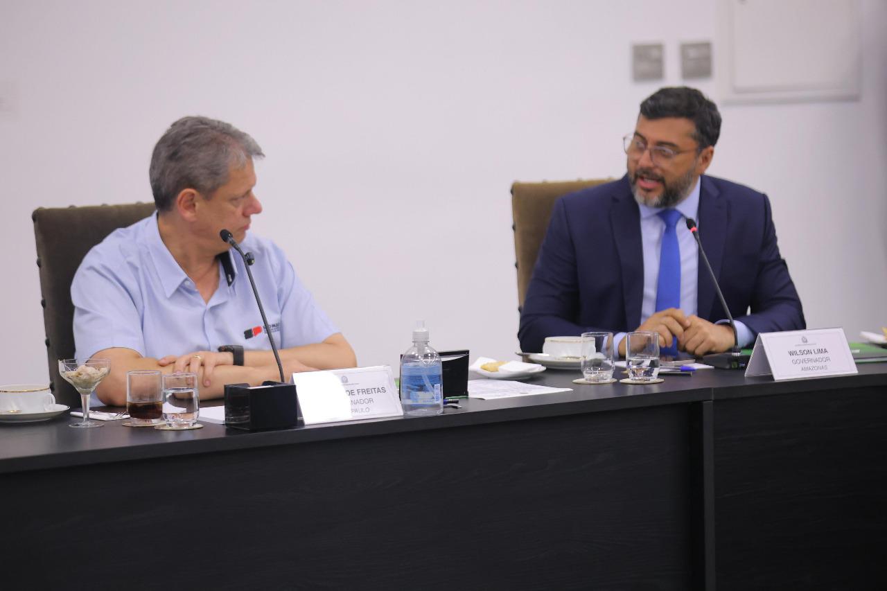 Recebido por Tarcísio de Freitas, o governador Wilson Lima participou da mesa de debates ao lado de outras autoridades e representantes dos órgãos estaduais de meio ambiente, incluindo o vice-presidente da Abema, o secretário de Meio Ambiente do Amazonas, Eduardo Taveira.
