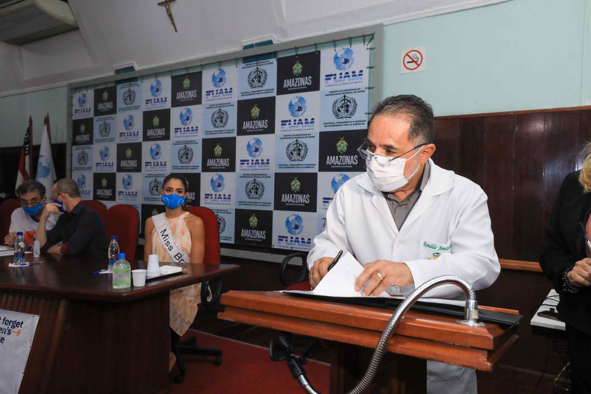 Evento – Além do diretor-presidente da Fuam, Ronaldo Amazonas, estiveram presentes no evento os coordenadores nacional e estadual do Movimento de Reintegração das Pessoas Atingidas pela Hanseníase (Morhan), Artur Custódio e Pedro Borges, respectivamente. Também participaram da cerimônia o presidente do Conselho Nacional de Saúde (CNS), Fernando Pigatto, e a Miss Brasil Mundo 2021, Carolina Teixeira, embaixadora da causa no Brasil.