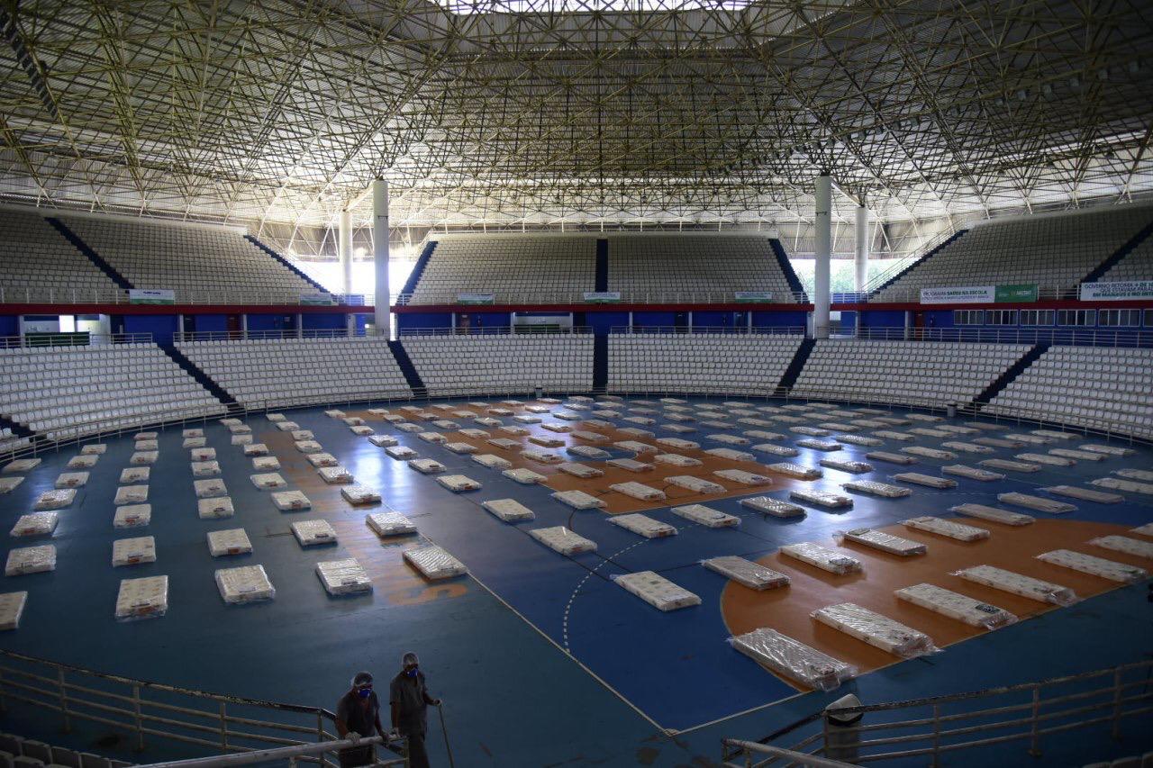 Abrigo Emergencial – A base, que passa a funcionar como abrigo para pessoas em situação de rua a partir de segunda-feira (30/03), foi montada na Arena Poliesportiva Amadeu Teixeira. A estimativa é que 350 pessoas sejam atendidas diariamente, no espaço.