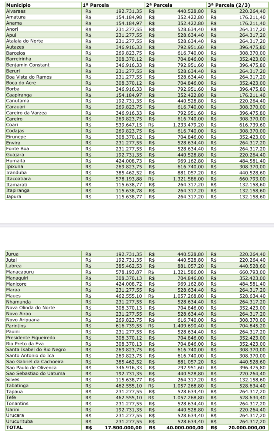 A gestão do governador WIlson Lima (PSC) já repassou R$ 77,5 milhões do Fundo de Fomento, Turismo, Infraestrutura, Serviços e Interiorização do Desenvolvimento do Amazonas (FTI) aos 61 municípios do interior.