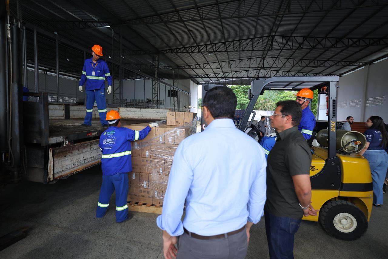 O governador Wilson Lima acompanhou, nesta terça-feira (20/05), a remessa de mais de 3,4 mil luminárias em LED destinadas à modernização da iluminação pública nos municípios de Borba e Uarini, (a 151 km e 565 km de Manaus, respectivamente). A ação integra o programa Ilumina+ Amazonas, iniciativa do Governo do Estado que já beneficia 51 cidades com soluções tecnológicas e sustentáveis para a rede de luz pública.