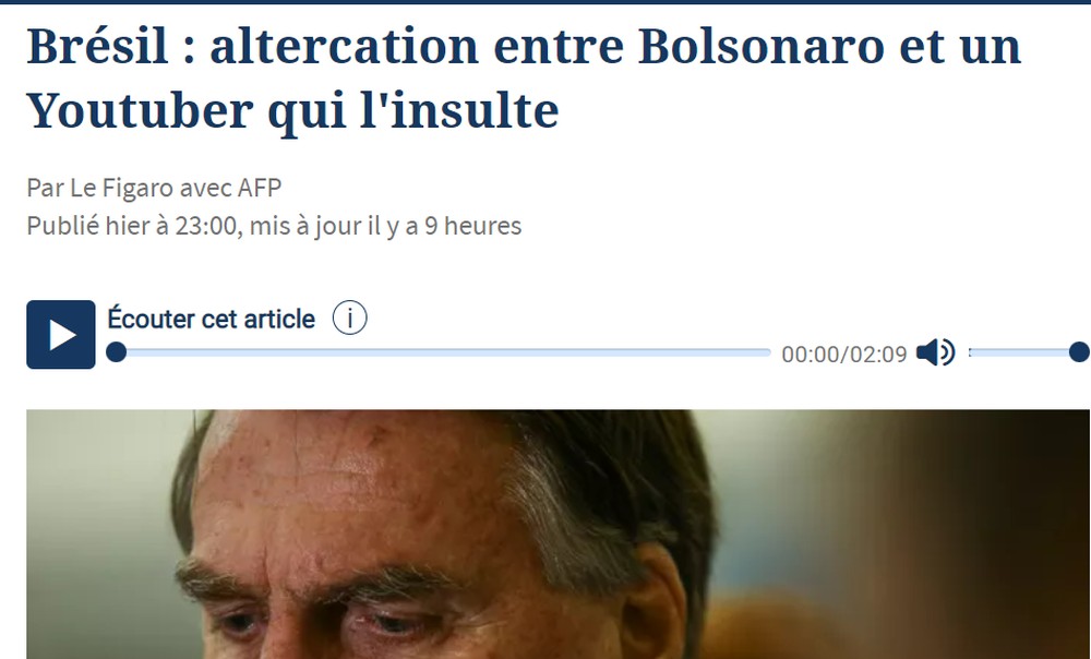 O jornal francês informou que Bolsonaro brigou com um youtuber que o desafiou e insultou, tentando pegar seu telefone enquanto filmava a cena, antes de iniciar uma conversa com ele.