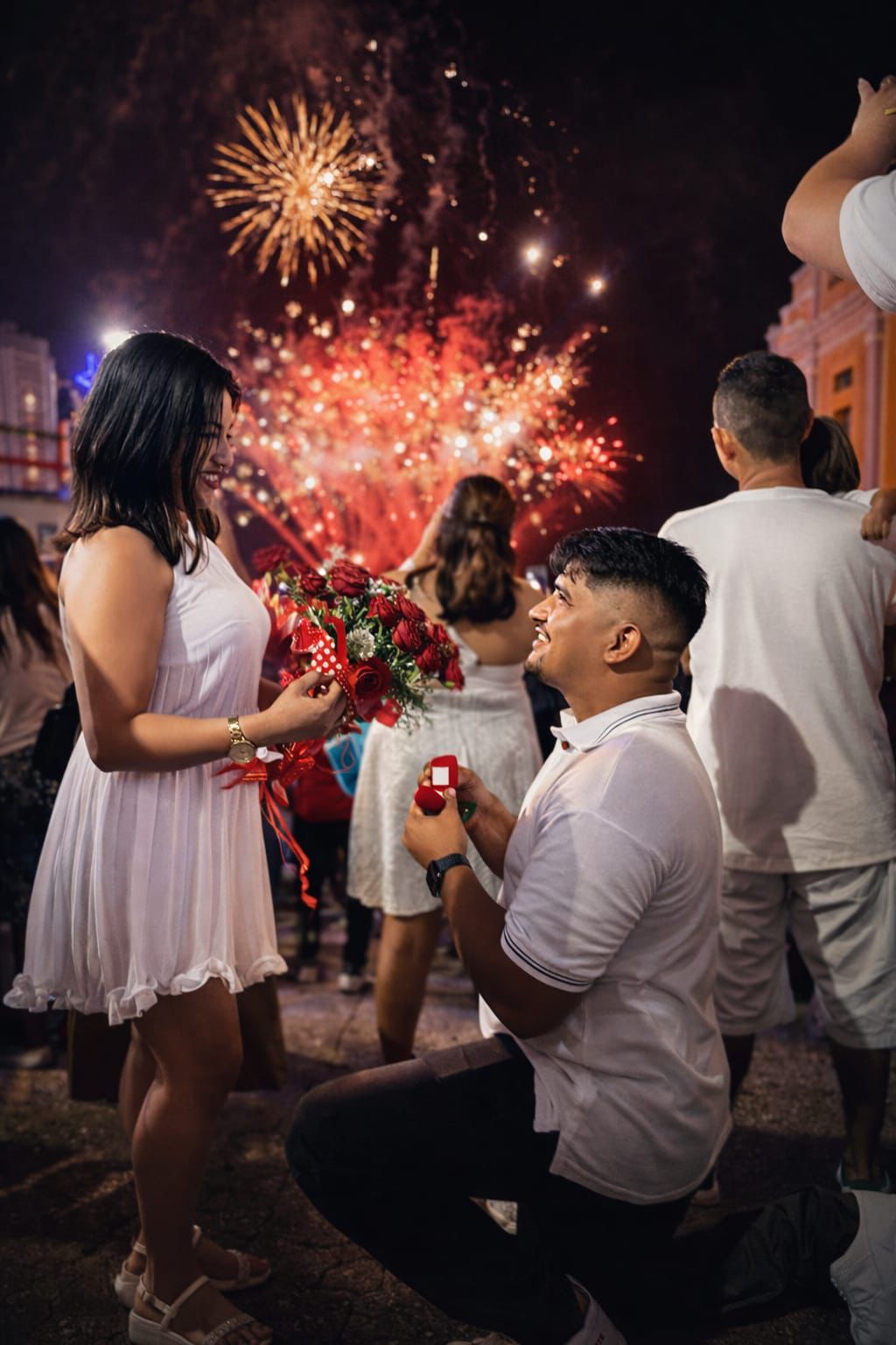 Durante a contagem regressiva do Réveillon, em meio aos fogos de artifício e aos aplausos do público, Wendel surpreendeu Natália ao se ajoelhar e fazer o tão esperado pedido. O momento aconteceu exatamente na virada para 2026 e foi recebido com emoção por quem acompanhava a celebração.