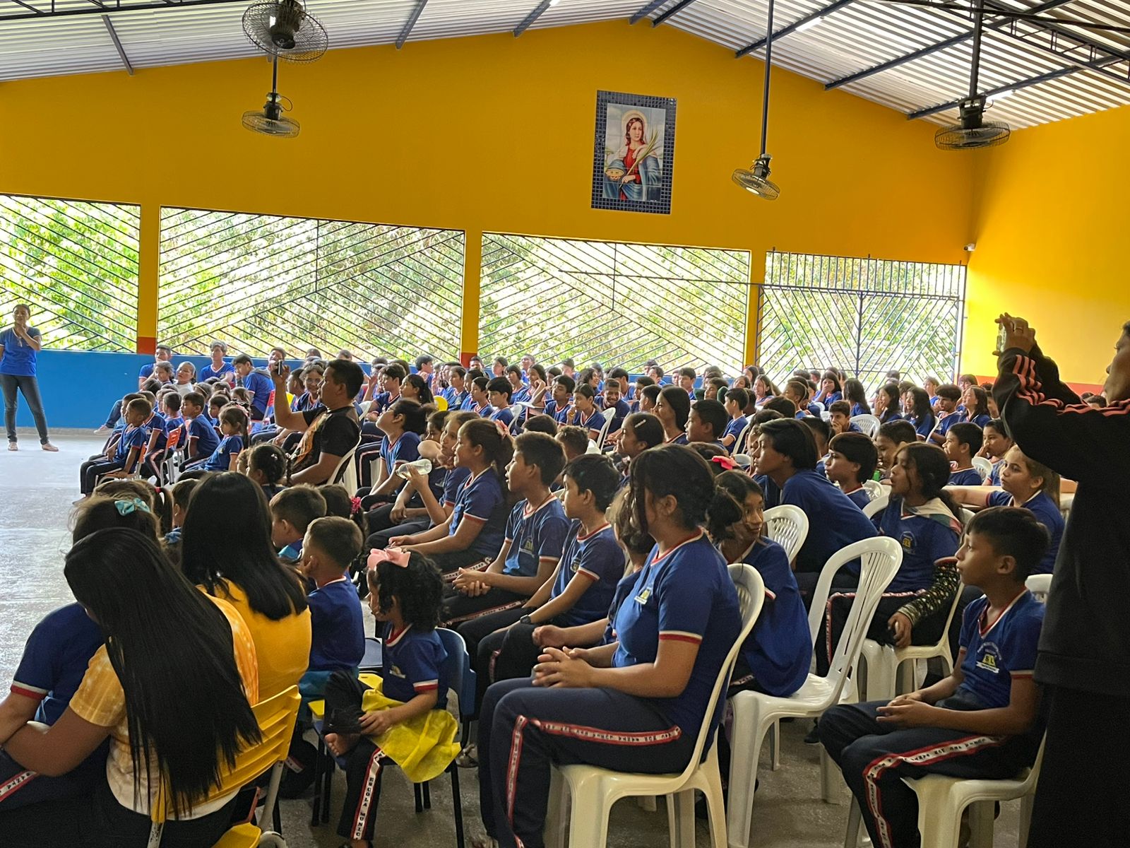 As apresentações aconteceram em três unidades de ensino localizadas em áreas periféricas e rurais do município: os Centros Educacionais Sementinha e Pequeninos de Nazaré, além da Escola Municipal Santa Luzia.
