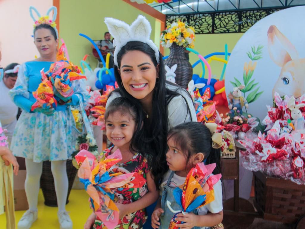 Mais de 1.500 crianças de Parintins e das agrovilas do Mocambo, Caburi e Vila Amazônia receberam, na tarde deste domingo (17), ovos de chocolate na Ação Social de Páscoa da primeira dama do município de Parintins, Mayra Dias, realizado pelo terceiro ano consecutivo.