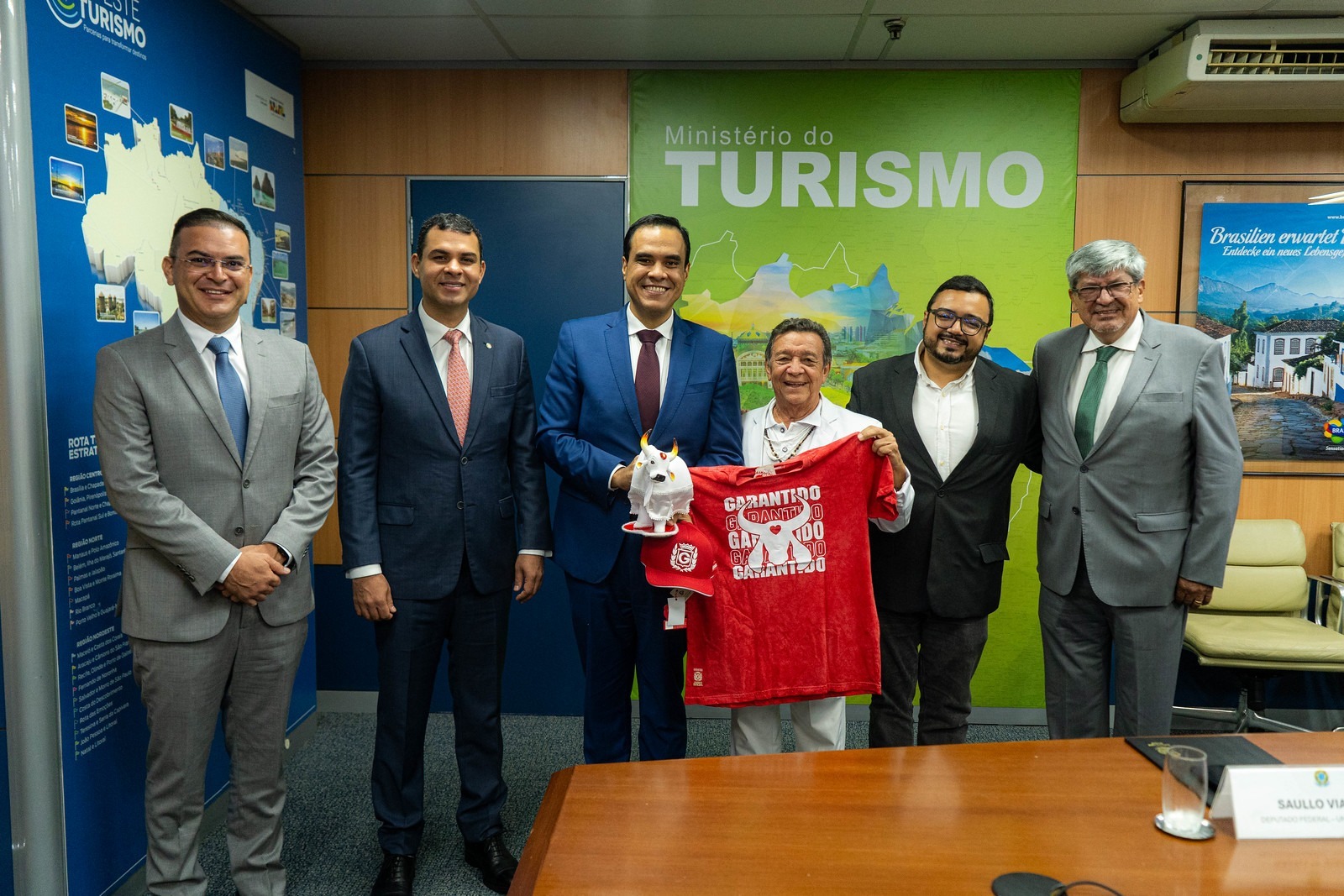 Para construir o maior festival cultural do Brasil, o prefeito de Parintins, Mateus Assayag, e as presidências de Caprichoso e Garantido estiveram em Brasília nesta terça-feira, 03, numa importante conversa com o ministro do Turismo, Gustavo Feliciano. O encontro contou com articulação do deputado federal Saullo Vianna (União Brasil).
