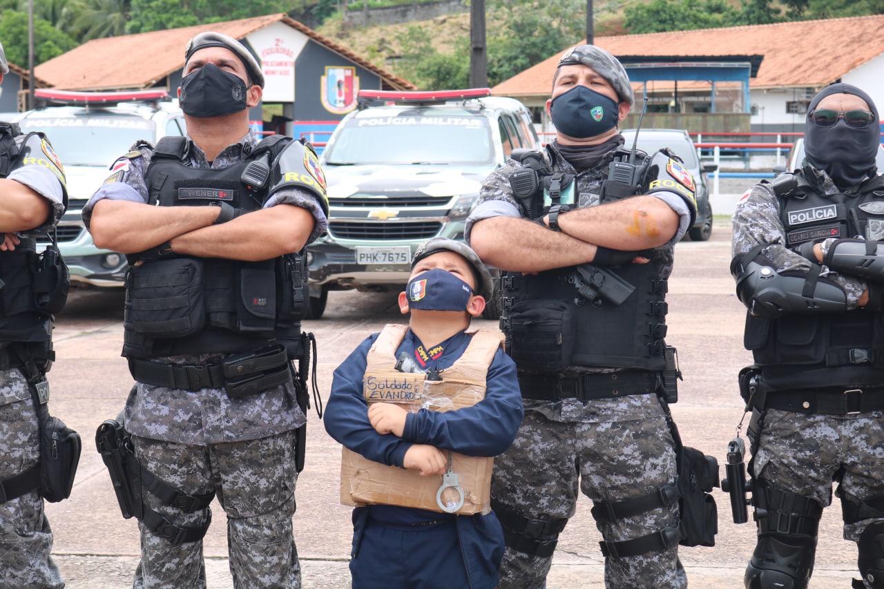 O soldado Evandro, como foi chamado pelos policiais, foi apresentado ao comandante do batalhão. Ele pôde usar a boina rajada, andar na viatura e conhecer um pouco a história da Rocam. Durante sua visita, o pequeno não conseguiu conter a emoção pela realização do sonho e foi às lágrimas. Ele disse que, quando crescer, quer ser policial militar.