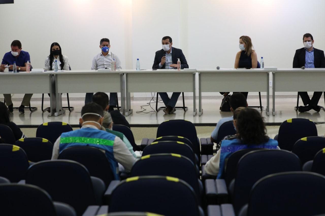 O governador Wilson Lima recebeu a equipe do Ministério da Saúde durante a manhã. Ele destacou a importância do suporte oferecido pelo Governo Federal neste momento de aumento de casos da Covid-19.