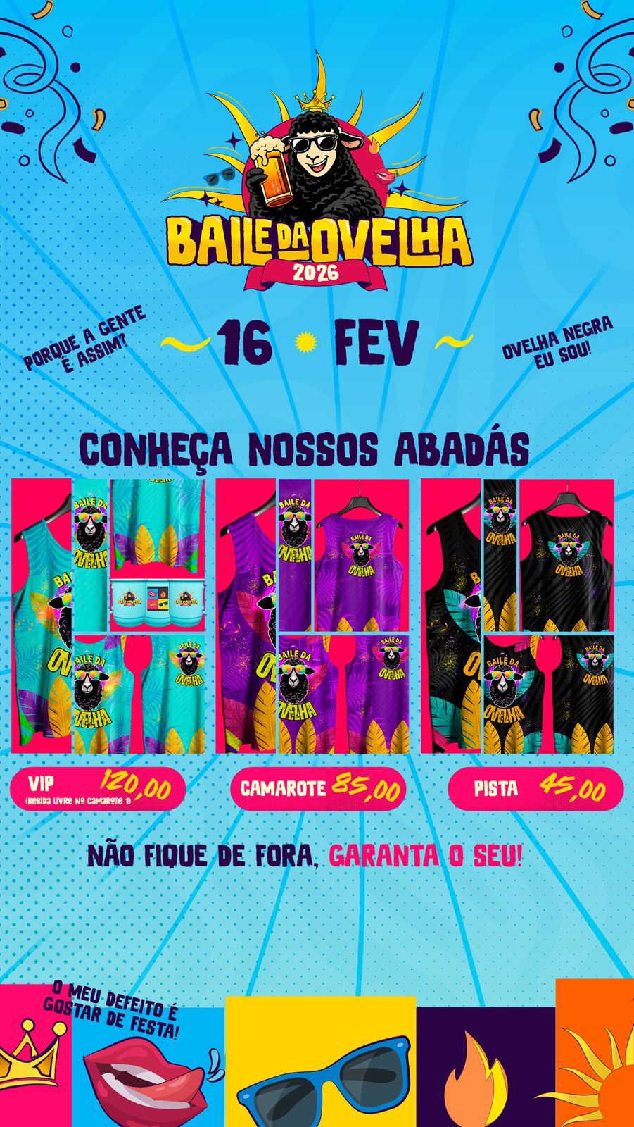 A grande festa da banda Ovelhas Negras acontece no dia 16 de fevereiro, tradicionalmente na segunda-feira de Carnaval, e a programação completa será divulgada em breve. Para mais informações e aquisição de abadás, os interessados podem entrar em contato pelo números (92) 99390-1653 // (92) 98249-5110 // (92) 99483-7086. A Loja A Moderninha também está com a venda dos abadás.