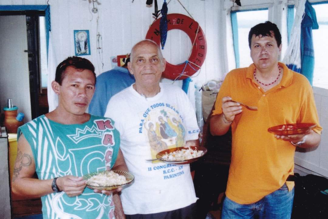 Padre Benito, Azemar e visitante italiano no Barco São Pancrácio