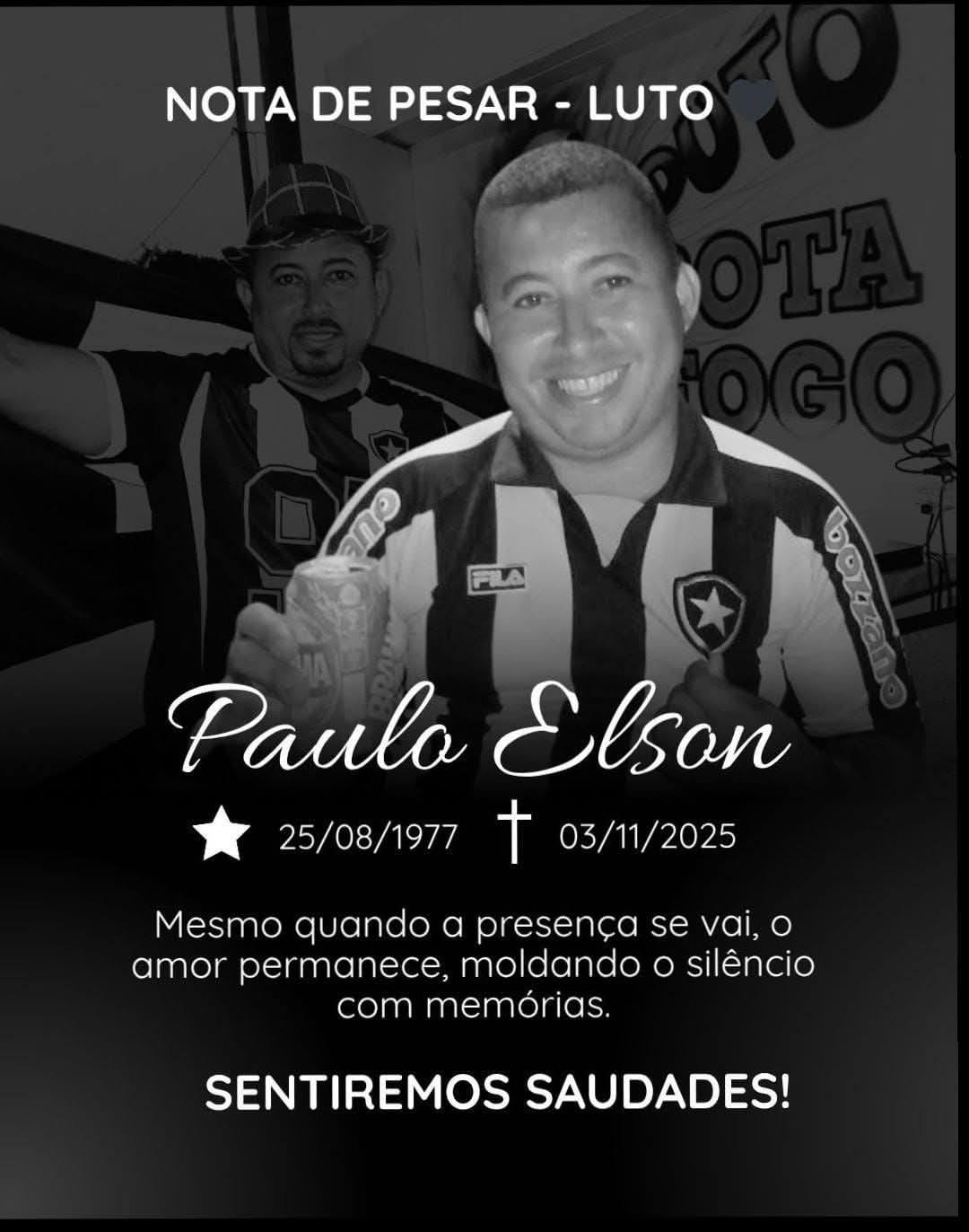 A cidade de Parintins amanheceu de luto nesta terça-feira, com a notícia do falecimento do empreendedor Paulo Elson de Castro Nunes, carinhosamente conhecido como Paulo Botafoguense. Ele tinha 48 anos e faleceu, na segunda-feira, 3 de novembro de 2025, no município de Florianópolis (SC), após quase dois meses internado em decorrência de um Acidente Vascular Cerebral (AVC).