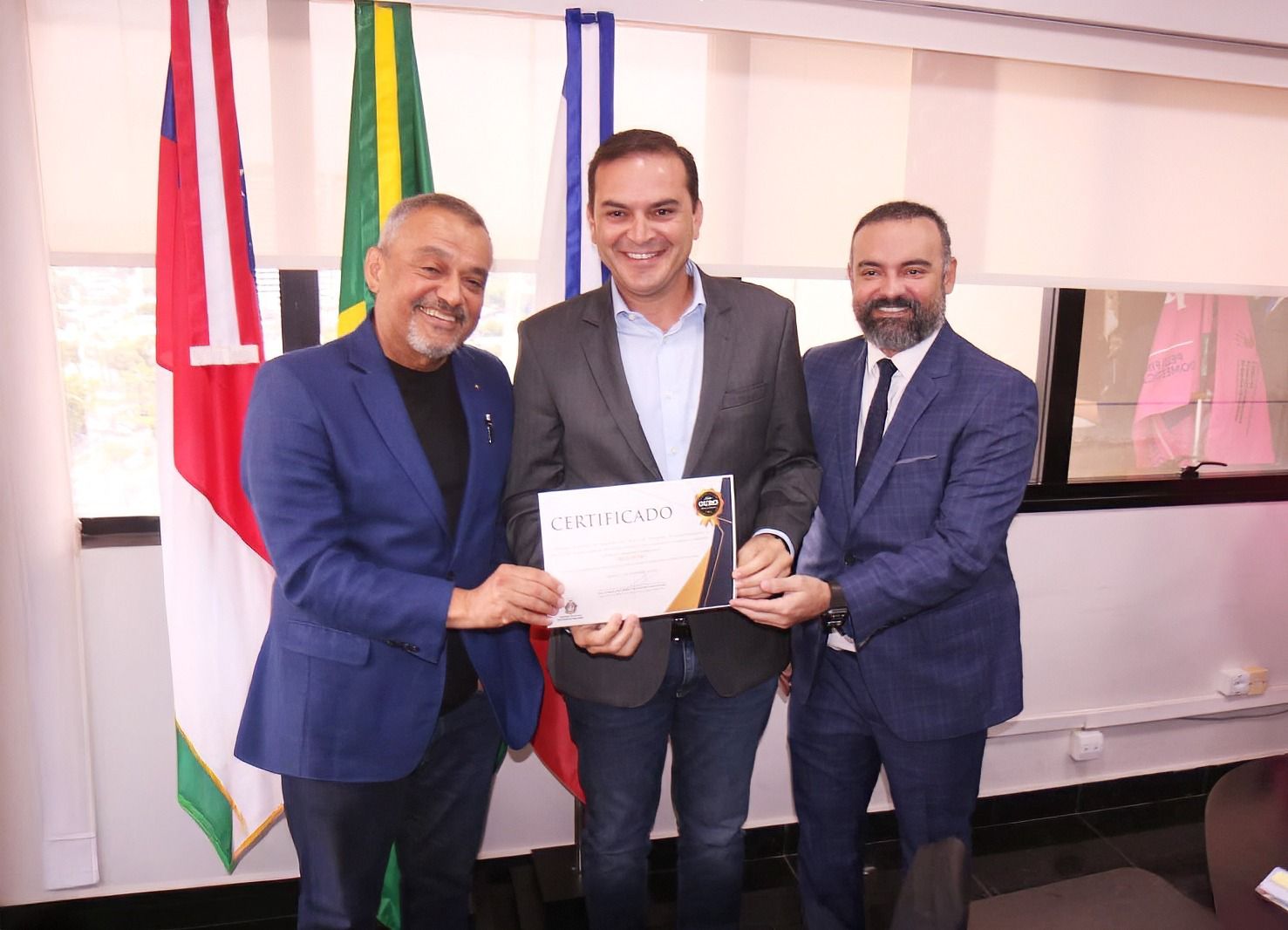 Em cerimônia realizada nesta quarta-feira, 03 de dezembro, no gabinete da presidência do Tribunal de Justiça do Amazonas, o prefeito de Parintins, Mateus Assayag, recebeu das mãos do presidente da corte, desembargador Jomar Fernandes, o “Selo Ouro” de Quitação Orçamentária. A honraria é oferecida pelo Judiciário amazonense a entidades públicas que cumpriram seus compromissos como o pagamento regular de precatórios, dentro dos prazos estabelecidos pela Justiça.