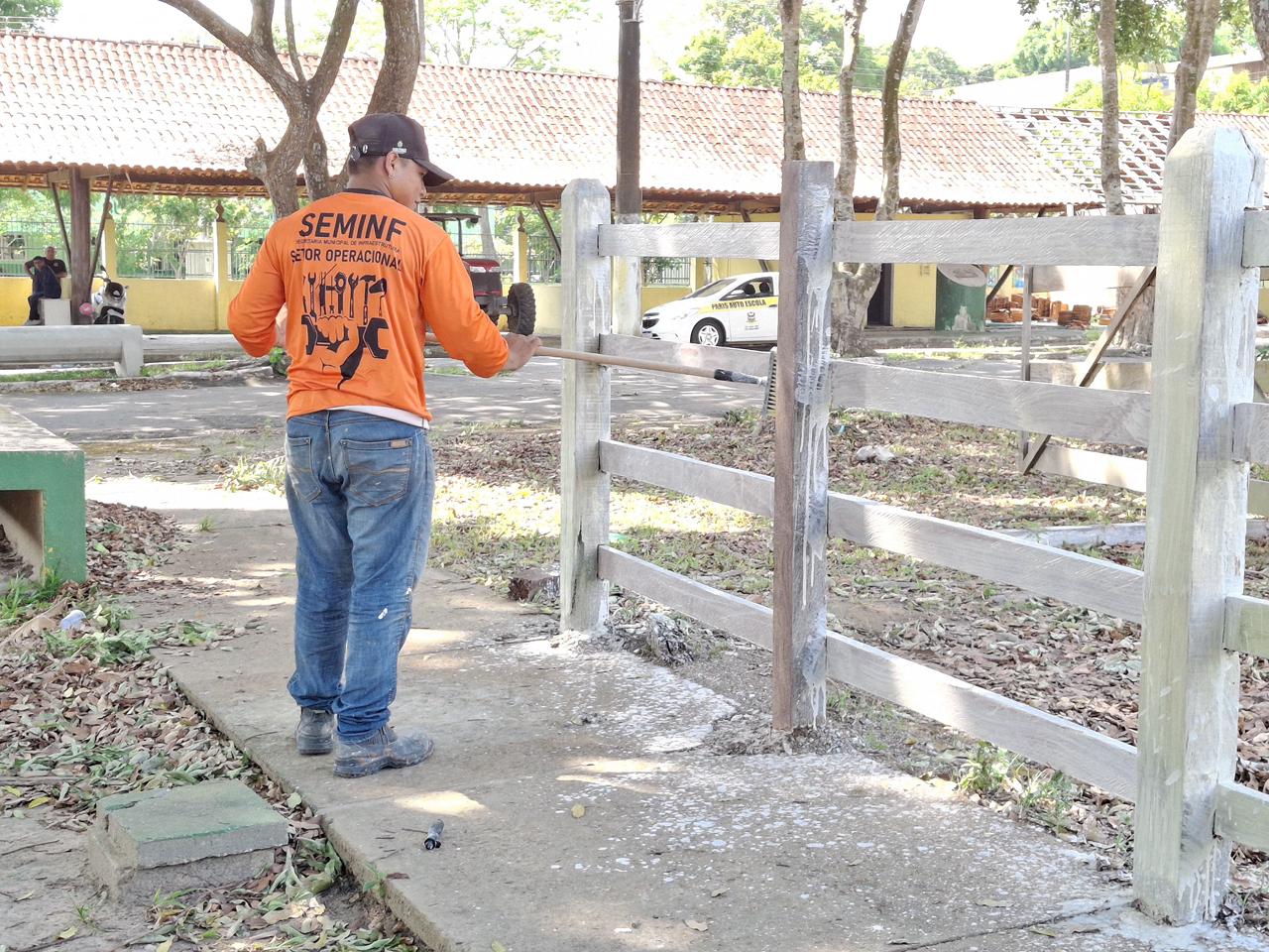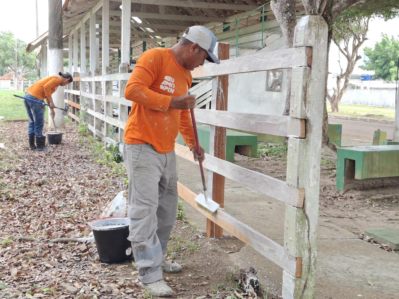 A Prefeitura de Parintins, por meio da Secretaria Municipal de Infraestrutura (Seminf), iniciou nesta semana uma série de serviços operacionais no Parque de Exposição Luiz Lourenço de Souza, em preparação à 38ª Expopin, que será realizada de 3 a 7 de dezembro. As ações incluem a pintura da mureta, da fachada principal e das cercas, além de outras intervenções estruturais que integram o plano de revitalização do espaço.