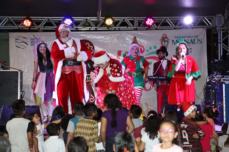 O clima natalino tomou conta do parque lagoa Senador Arthur Virgílio Filho, no bairro Japiim, zona Sul, na sexta-feira, 6/12. O “Natal do Abraço 2019” promovido pela Prefeitura de Manaus, por meio do Fundo Manaus Solidária, levou alegria e descontração para mais de 200 crianças e adultos com uma programação cultural interativa e animada.