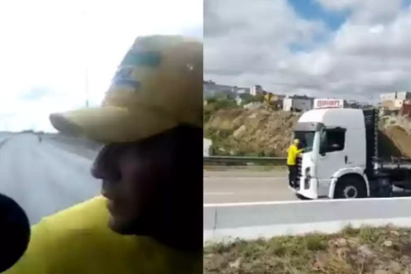 Junior, ao tentar impedir a passagem do caminhão, ficou pendurado no para-brisa e foi levado por quilômetros. "Vou parar ali para você descer, você desce, beleza? Não quero confusão, velho, tô trabalhando. Saí da minha casa... tenho três filhos", diz o caminhoneiro no vídeo.