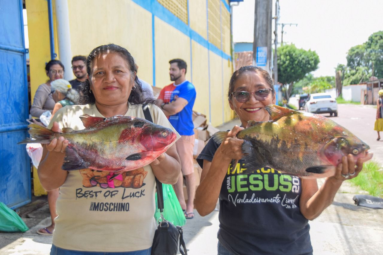 Em novo formato, a operação aconteceu nesta quinta-feira (17) nos Ginásios Aderaldo Dutra (Itaúna II), Ginásio Tristão Cruz (Itaúna I) e Olívia Hatta (Santa Rita). Três mil famílias foram contempladas com sete kilos de peixe entre os quais: tambaqui, jaraqui, pescada e filé de dourado, atendendo um universo de 27 mil pessoas.