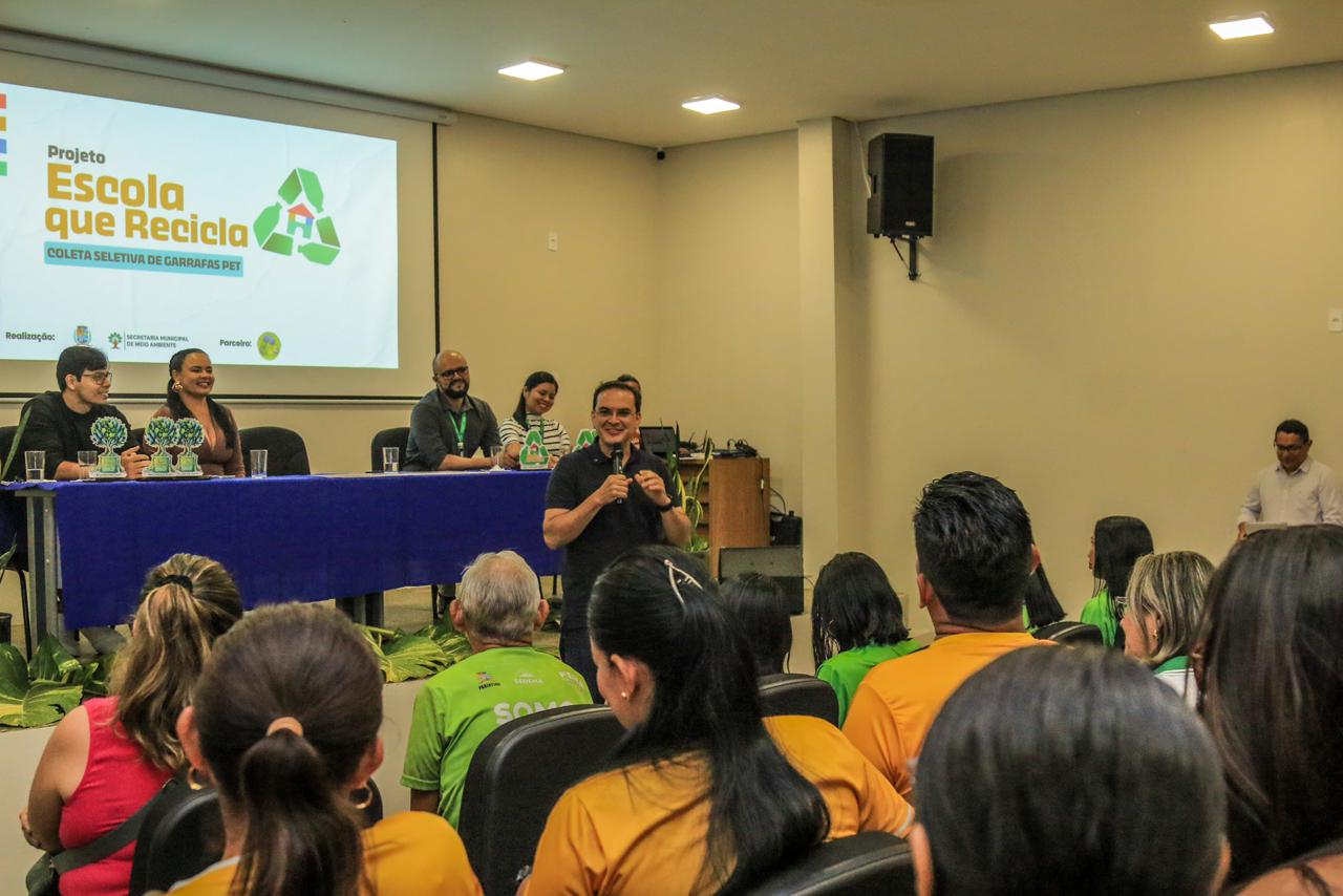 A Prefeitura Municipal de Parintins premiou, nesta sexta-feira (19), as três escolas campeãs do projeto “Escola que Recicla”, iniciativa voltada à educação ambiental e ao incentivo à coleta seletiva no ambiente escolar. Ao todo, o projeto arrecadou 12.014,40 toneladas de garrafas PET, com a participação de 23 escolas da rede municipal.