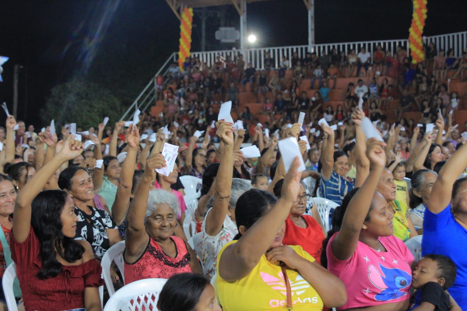 A comemoração aconteceu no Mocambódromo. O espaço ficou completamente lotado, com as mamães nas arquibancadas e na arena na expectativa para serem premiadas.