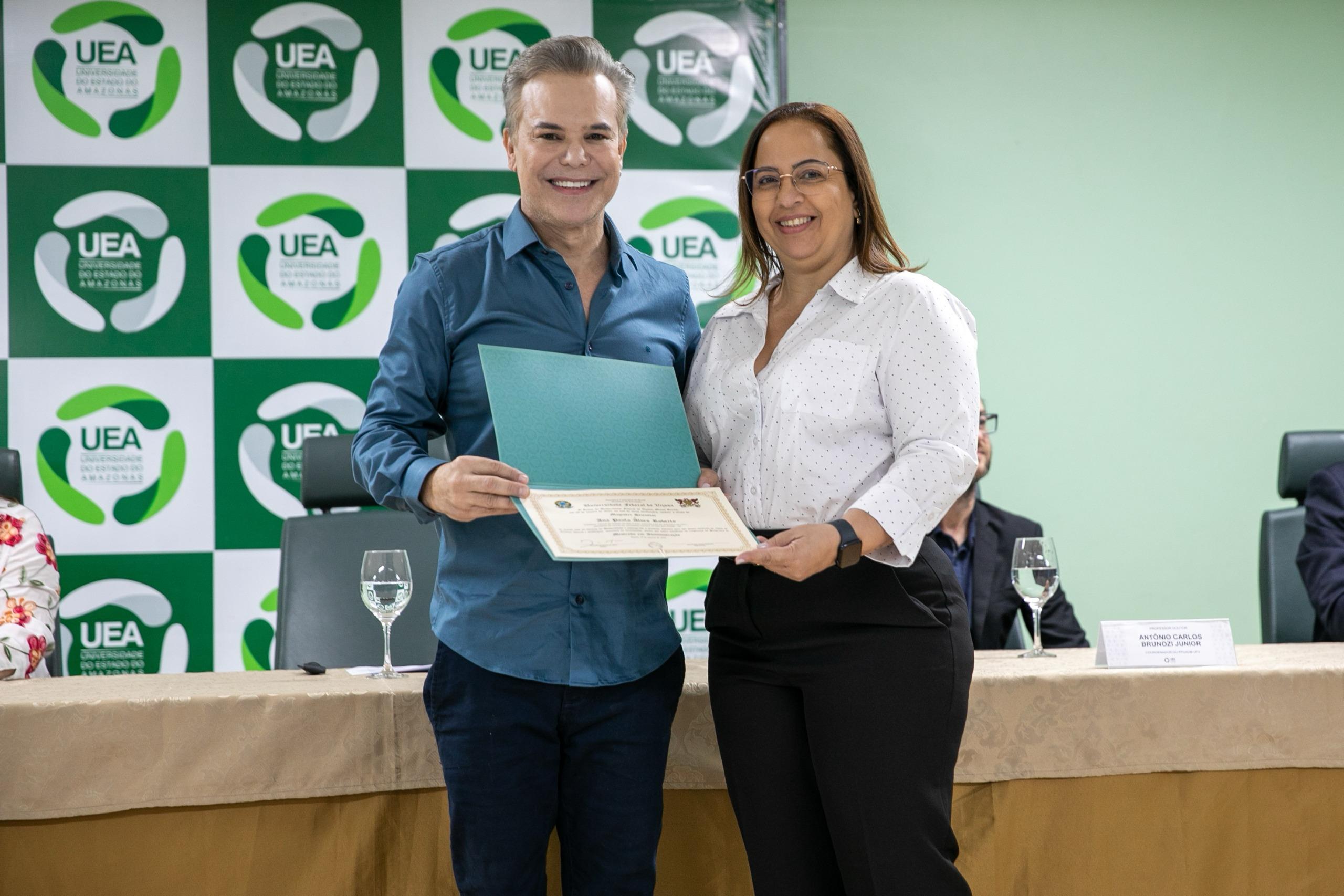 Estiveram presentes, ainda, a coordenadora do curso de Administração da UEA, Prof. Dra. Márcia Maduro; o coordenador e professor do Programa de Pós-graduação em Administração da UFV, Prof. Dr. Antônio Carlos Brunozi Junior; e o coordenador de pós-graduação da ESO e coordenador local do Minter em Administração Pública da UEA/UFV, Prof. Dr. Orlem Pinheiro de Lima.