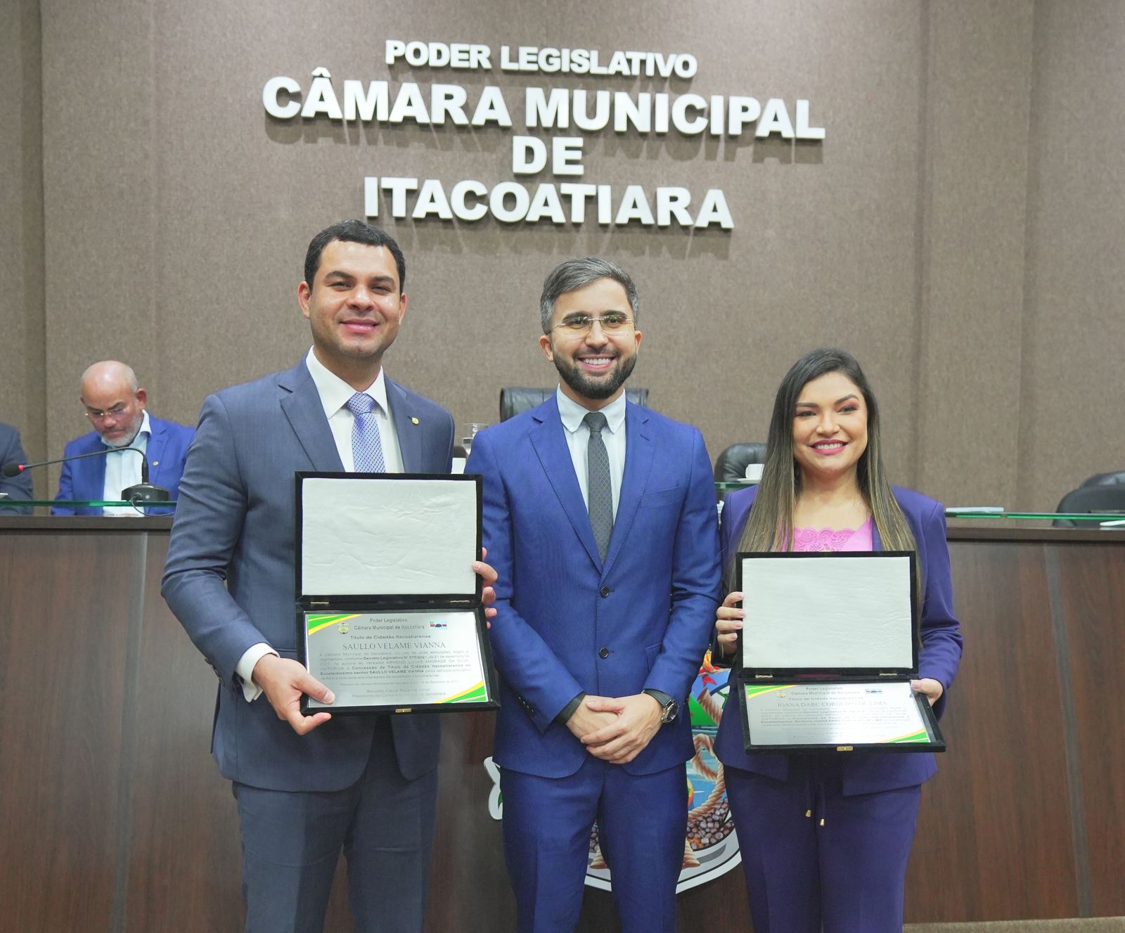 De autoria do vereador Arnoud Lucas (PV), a proposta foi aprovada por unanimidade pelos parlamentares do município. A cerimônia, que também concedeu o título à deputada estadual Joana Darc (União), foi realizada no plenário da Câmara Municipal de Itacoatiara.
