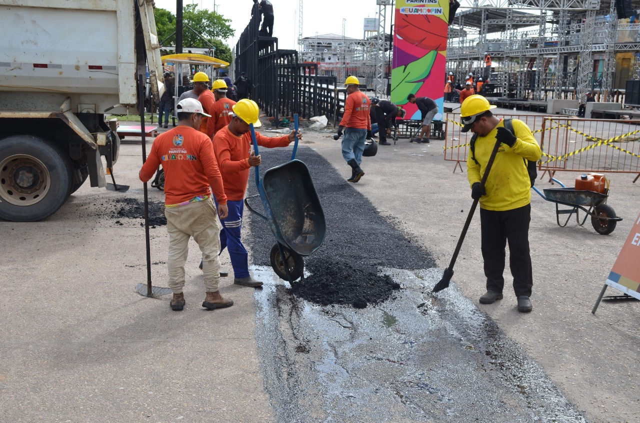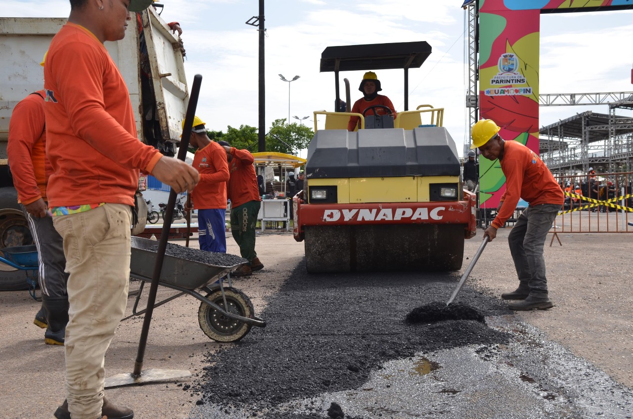 A equipe da Secretaria Municipal de Obras e Infraestrutura intensifica os trabalhos de manutenção no asfalto do Circuito Carnailha, visando melhorar as vias e a infraestrutura da cidade para o maior carnaval do Norte do Brasil.