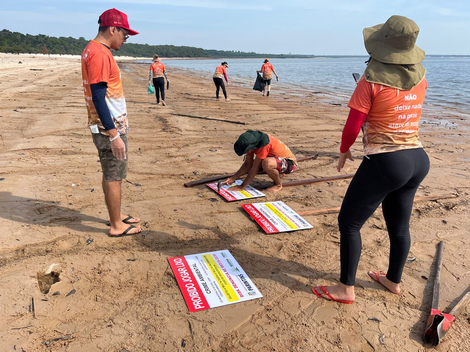 Uma ação ambiental foi realizada na Praia de Itaracuera, no Rio Uaicurapá, onde placas de alertas foram instaladas com orientação aos frequentadores.