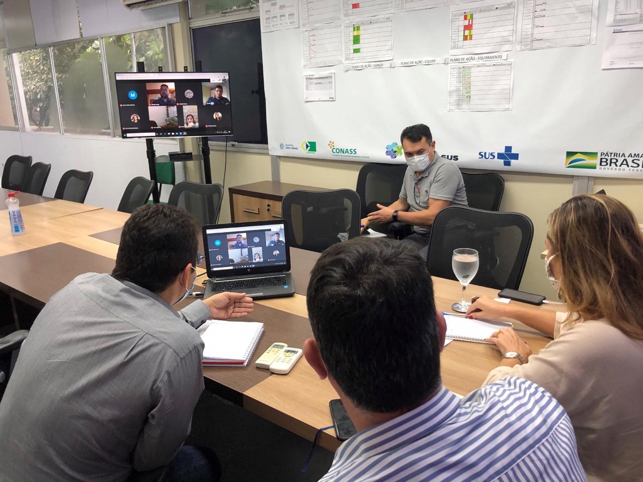 Tópicos de discussão – O presidente do Cosems e secretário municipal de Saúde de Tapauá, Januário Carneiro Neto, elencou alguns pontos listados em uma carta enviada pelo conselho à secretaria, em que se pede maior atenção a temas como a participação dos municípios na atualização do Plano de Contingência elaborado pelo Governo do Amazonas; auxílio na contratação de médicos e enfermeiros para os municípios; aumento na distribuição de insumos, medicamentos e EPIs.